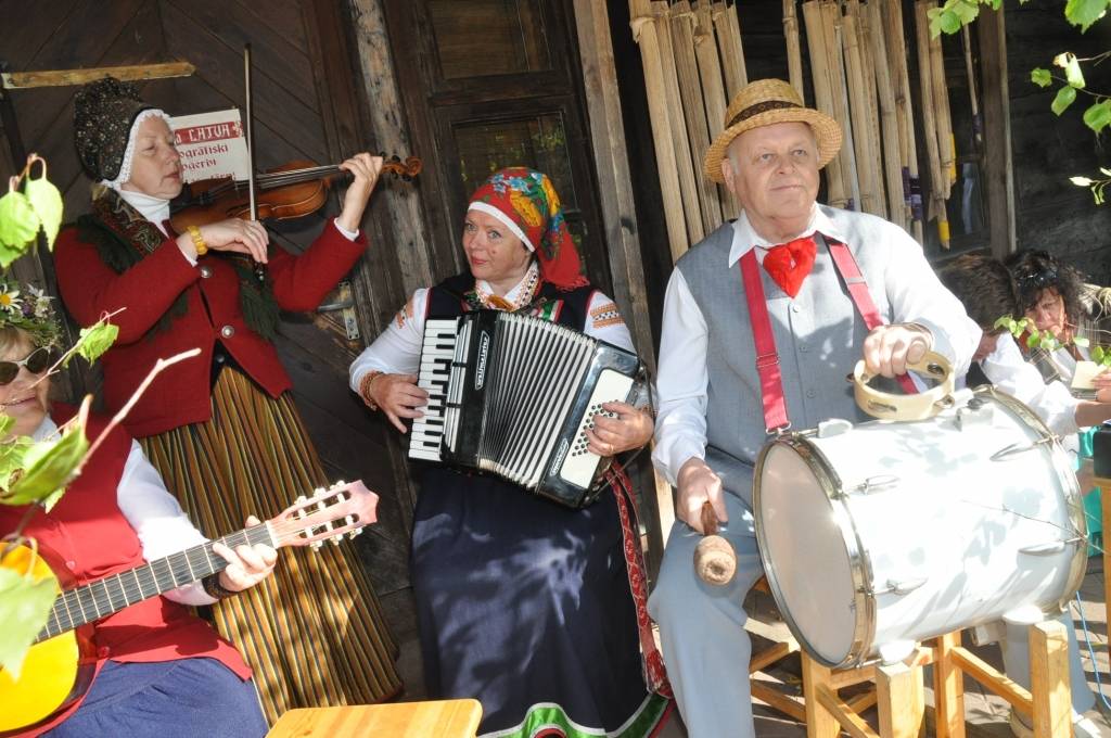 Folkloras kopa "Atštaukas" stāstīja ticējumus, atgādināja par latviešu tautas parašām, kas saistītas ar vasaras saulgriežiem.