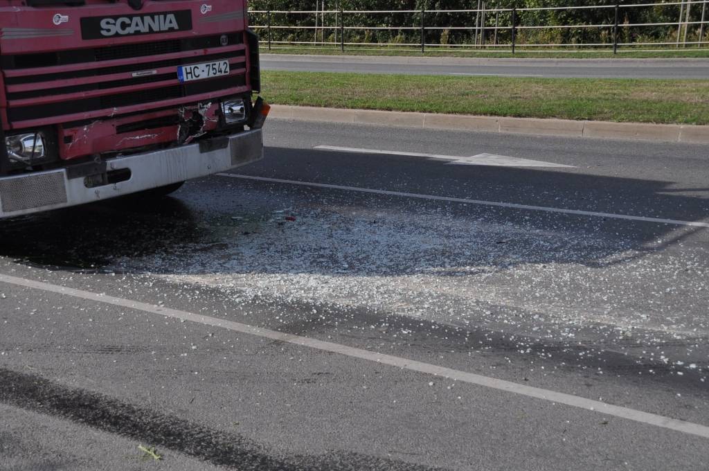 "Scania" pagrūda autobusu, kas savukārt krustojumā iedzinis "VW Golf". Vieglās automašīnas pasažieris bija guvis smagus sasitumus, tādēļ tika nogādāts Liepājas centrālajā slimnīcā.