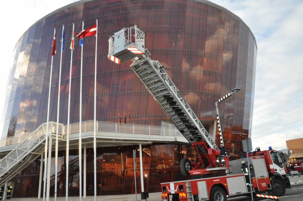FOTO: Ugunsdzēsēji mācās "Lielajā Dzintarā"