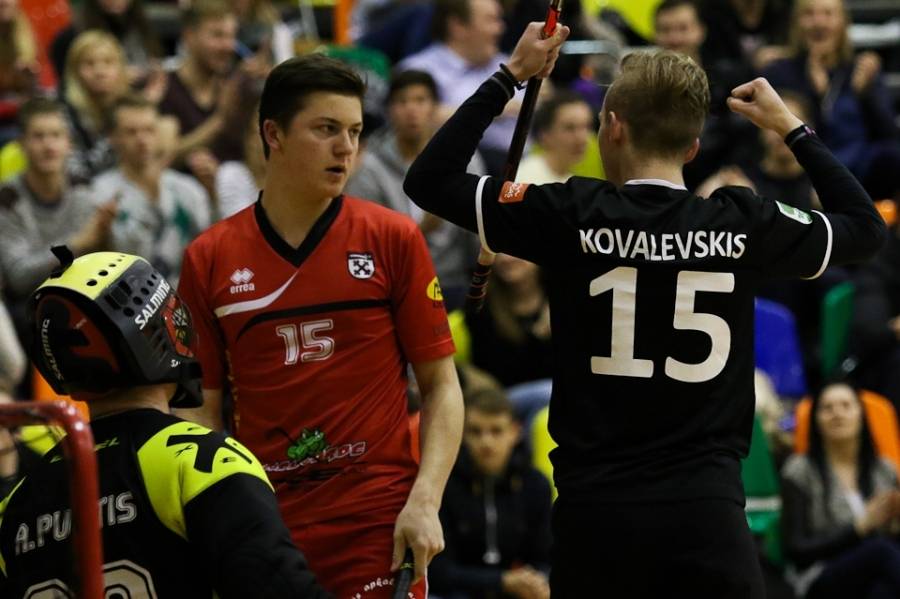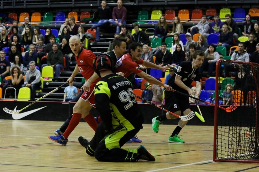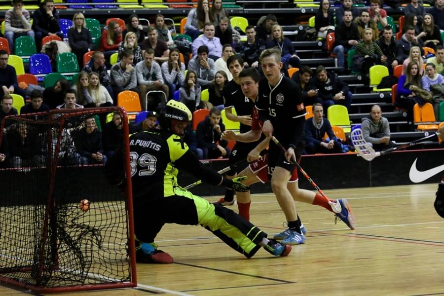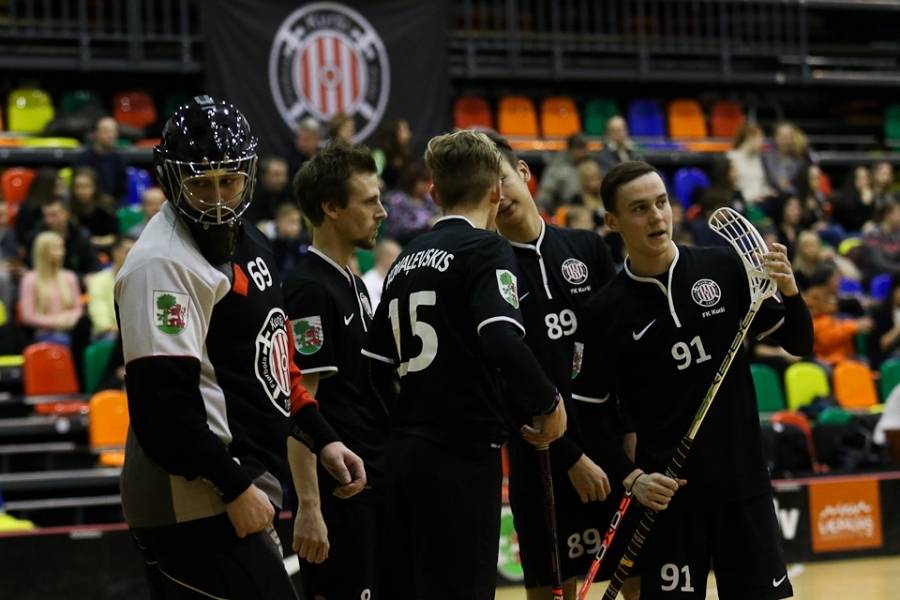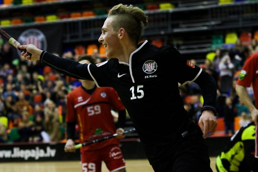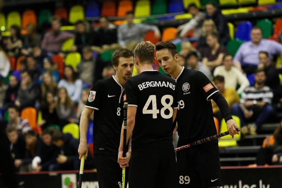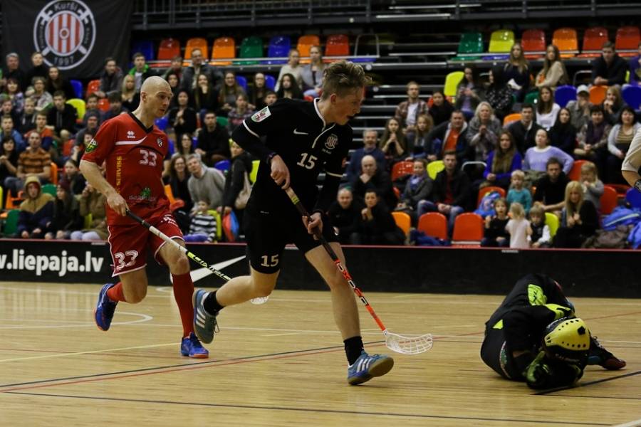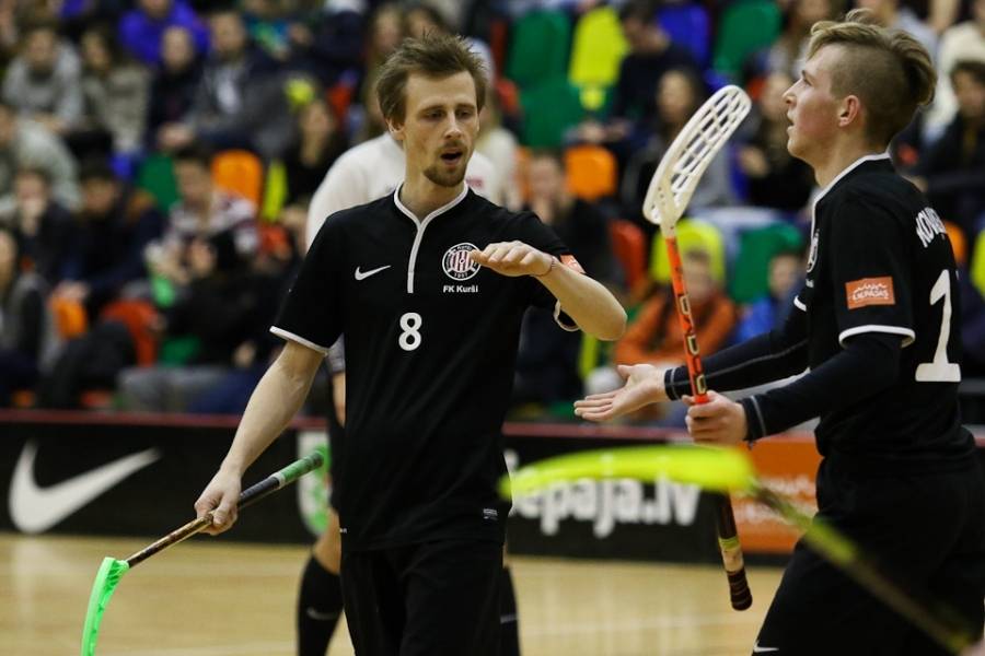 FK "Kurši" svētdien Liepājas Olimpiskajā centrā uzņēma turnīra pārliecinošo līderi "Lielvārdi", kas varēja palepoties ar jau desmit pēc kārtas svinētām uzvarām. Jāsaka, ka liepājnieki favorītus pilnīgi nerespektēja – 10. minūtē Rolands Kovaļevskis atklāja rezultātu (1:0), bet četras minūtes pirms pirmā pārtraukuma Kaspars Klamers panāca jau 2:0 mājinieku labā. Tiesa, līdz pārtraukumam viesiem, pateicoties Matīsa Pētera Poļa precīzam metienam, vienus vārtus izdevās atgūt – 1:2. Spēles vidū Rolands Kovaļevskis iemeta savi otro golu, atjaunojot "Kuršiem" divu vārtu handikapu – 4:2. Pirms izšķirošās trešdaļas laukuma saimnieku pārsvars gan atkal bija minimāls – 4:3. Pēdējās trešdaļas sākumā lielvārdietis Matīss Pēteris Polis panāca izlīdzinājumu (4:4), bet pēc tam rezultāts ļoti ilgu laiku nemainījās – varēja sākt domāt, ka ar 60 minūtēm uzvarētāju noskaidrošanai šoreiz nepietiks. Spēles lūzums nāca četras minūtes pirms pamatlaika beigām, kad lielvārdieša Toma Akmeņlauka mestā bumbiņa pēc atsišanās pret vārtu konstrukciju trāpīja pa liepājnieku vārtsarga Mārtiņa Saulīša muguru, bet pēc tam atrada savu patvērumu liepājnieku cietokšņa tīklā – 5:4. Pēc 15 sekundēm Aivis Kusiņš Liepājas komandas vārtos raidīja vēl vienu bumbiņu (6:4), praktiski izšķirot spēles likteni. Atlikušajā laikā "Lielvārdes" spēlētāji guva vēl divus vārtus un varēja svinēt savu vienpadsmito uzvaru pēc kārtas, pie tam nepelnīti pārliecinošu – 8:4.