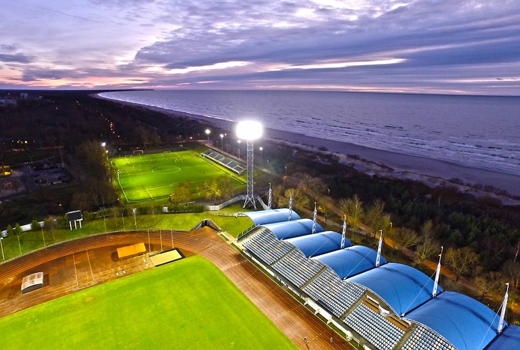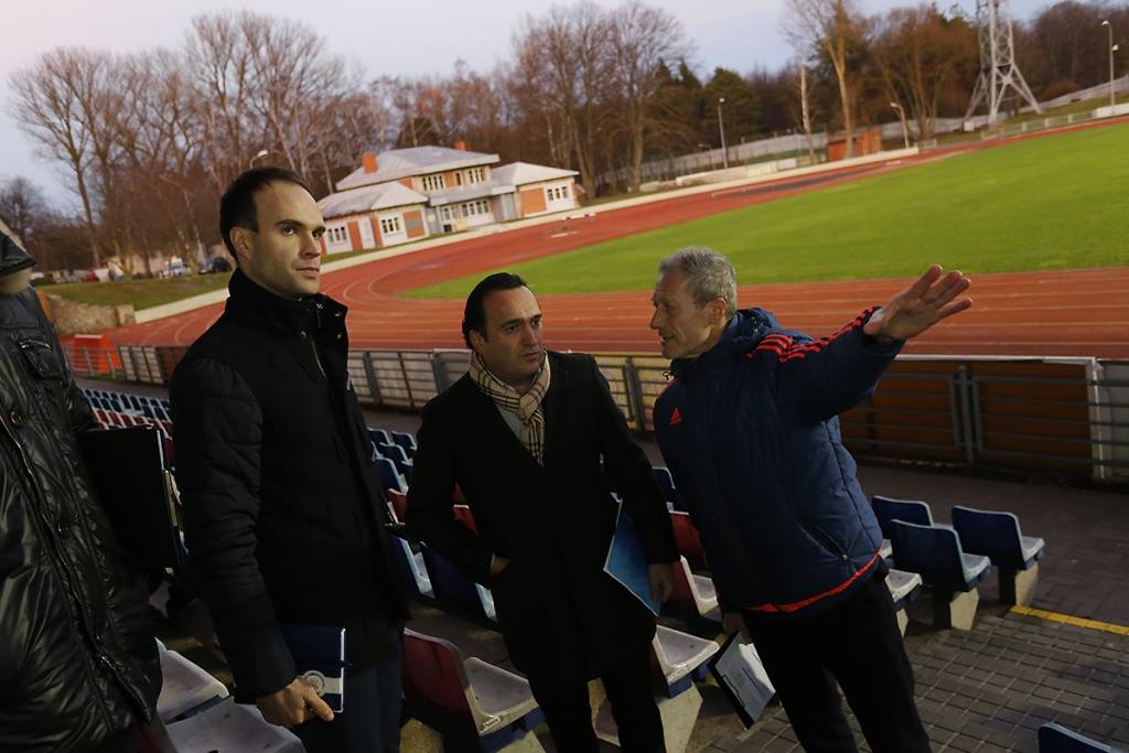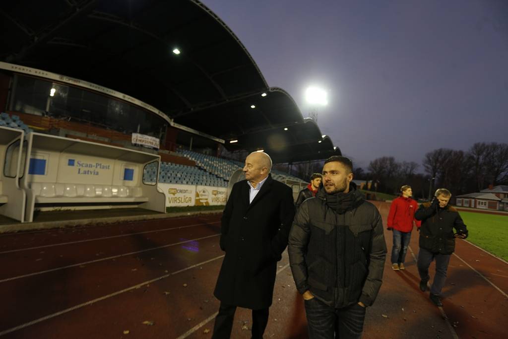 FOTO: UEFA un LFF inspektē Daugavas stadionu Liepājā