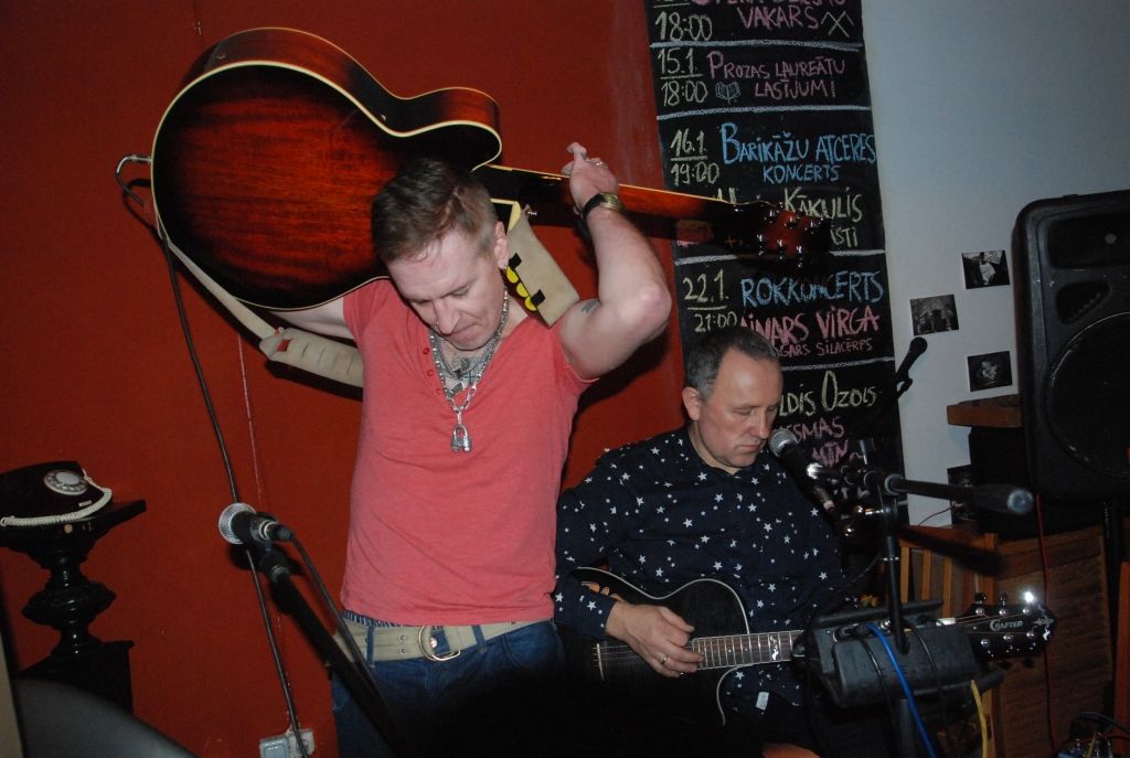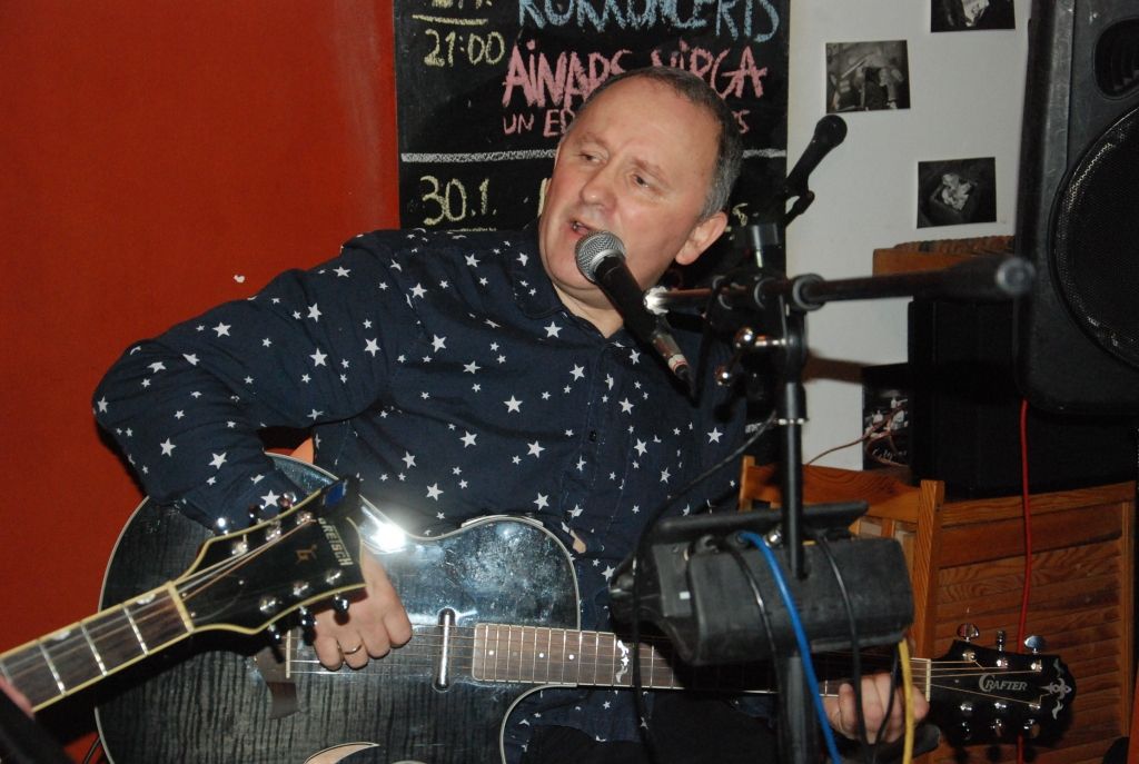 Liepājas rokmūziķis Ainars Virga piektdien, 22. janvārī, uzstājās Liepājas kafejnīcā "Kursas Putni" ar koncertu "Roks Barikādēm".