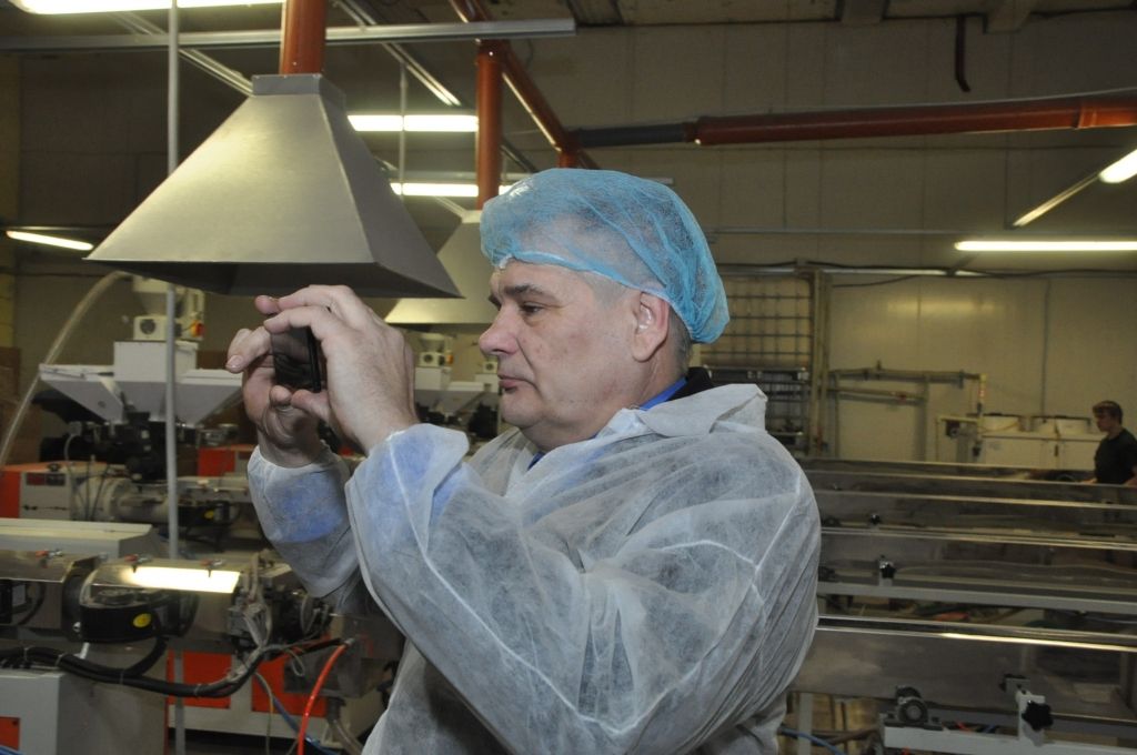 Pēc ražotnes telpu apskatīšanās partijas "No sirds Latvijai" līdere jokoja, ka noliks kvalitatīvos "iCotton” produktus uz prezidija galda.