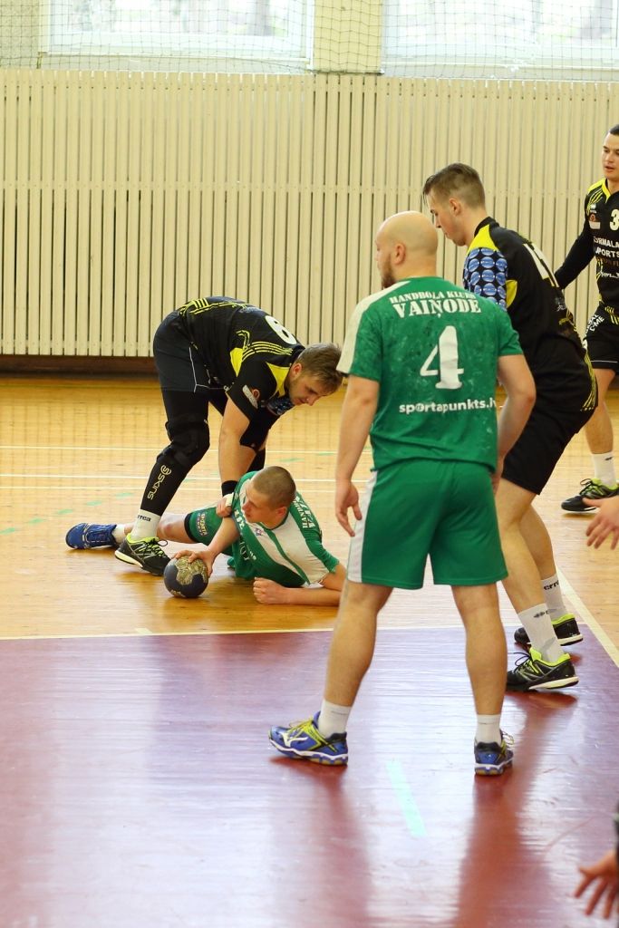 PAPILDINĀTS AR BILDĒM. Pie uzvaras savā pēdējā "SynotTip" Latvijas vīriešu handbola virslīgas regulārā čempionāta mačā sestdien tikusi "Vaiņode", kas tai pagaidām ļāvis izvirzīties turnīra tabulas sestajā vietā.