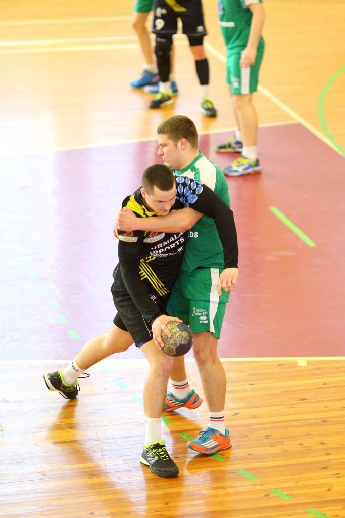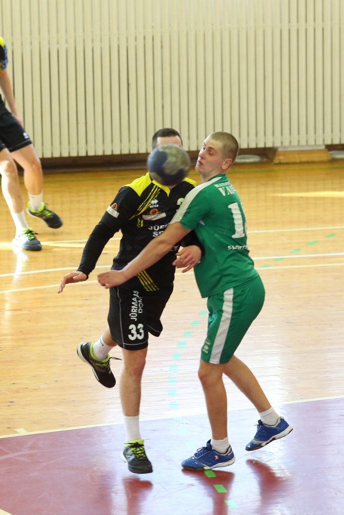 Abas komandas aizvadīja līdzvērtīgu maču, kurā ar pāris vārtu pārsvaru vadībā lielākoties atradās Vaiņodes vienība. Kad līdz mača beigām bija palikušas nedaudz vairāk kā trīs minūtes, tablo vēstīja kaujiniecisku neizšķirtu 27:27. Tomēr atlikušajā laikā jūrmalnieki palika tukšā, bet "Vaiņode" guva divus vārtus un izcīnīja uzvaru.