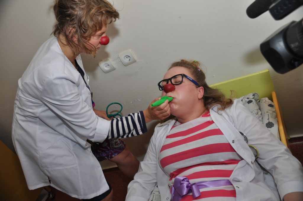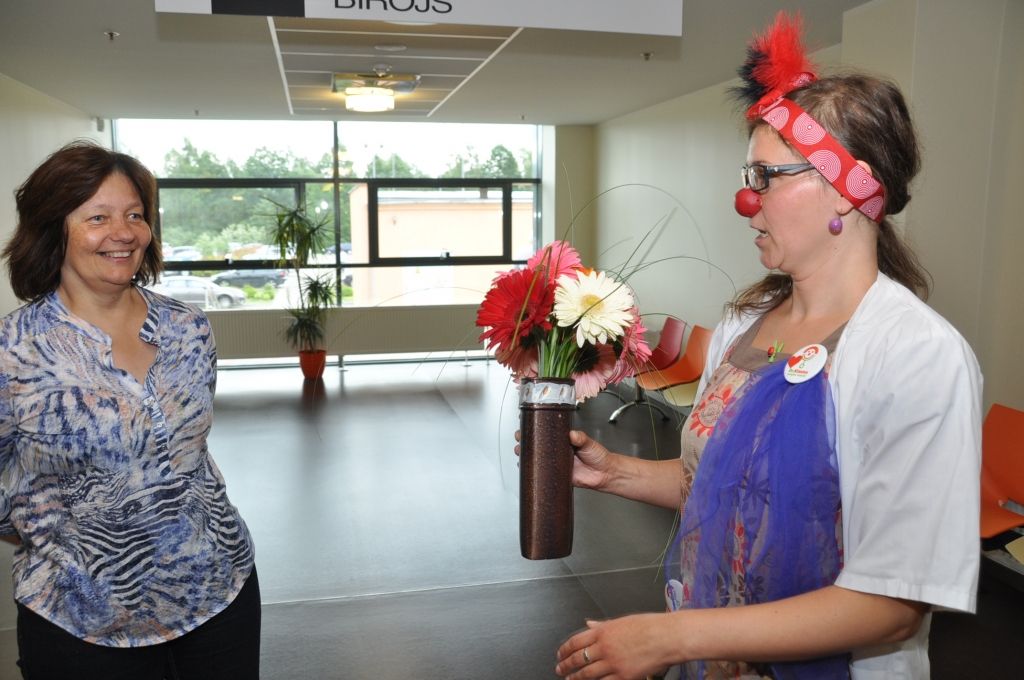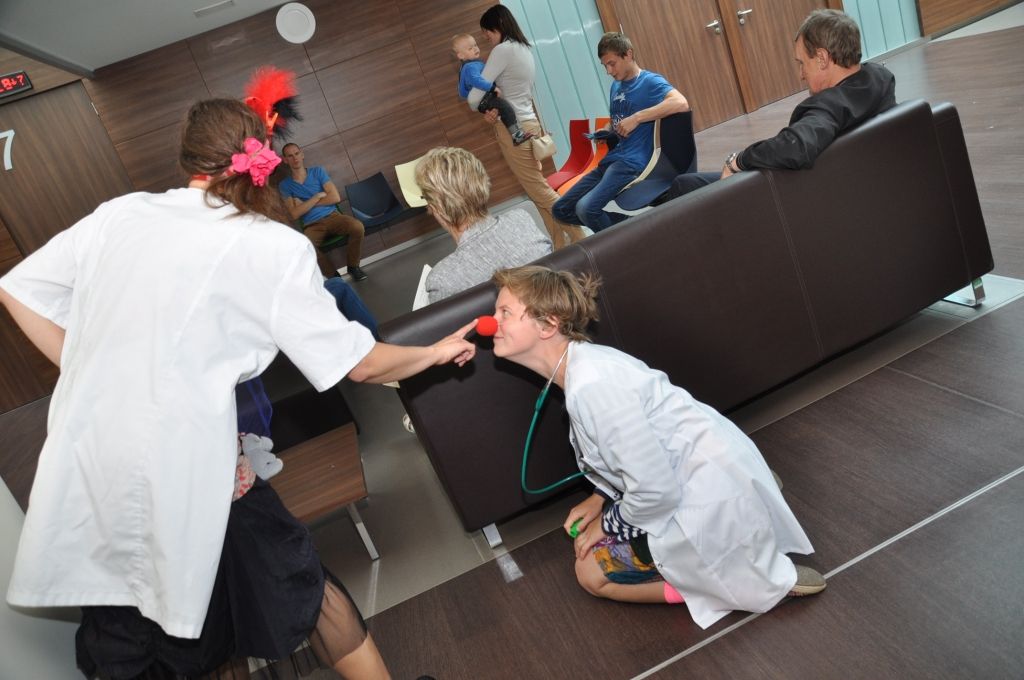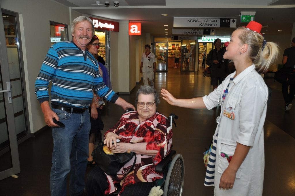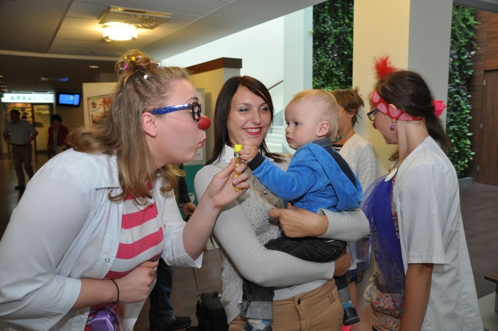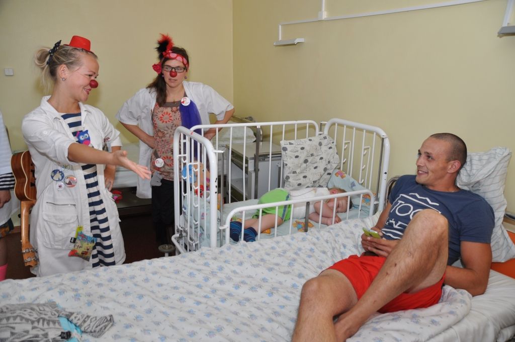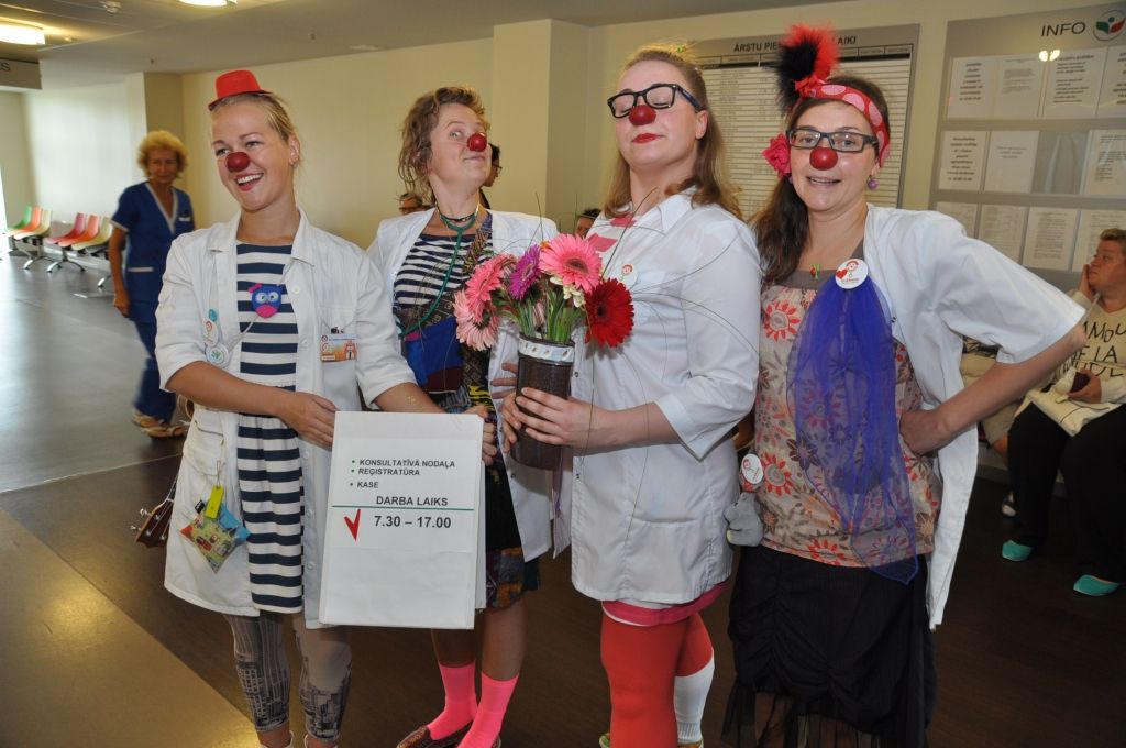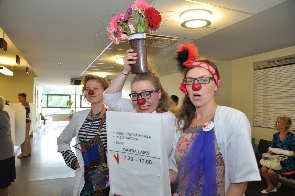 Piektdien, 8. jūlijā Liepājas reģionālajā slimnīcā ciemojās biedrība "Dr. Klauns". Šī bija pirmā Klaunu darba diena Liepājā un viņu uzdevums bjia sniegt pozitīvas emocijas mazajiem pacientiem veseļošanās laikā.