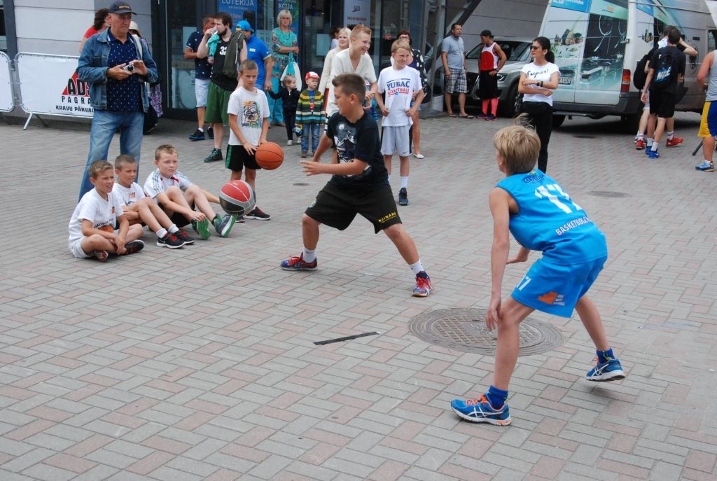 Liepājā pie tirdzniecības nama "Kurzeme" pagājušās nedēļas nogalē tika aizvadīts Liepājas ielu basketbola čempionāta "Bruģa bumba" Sportland posms.