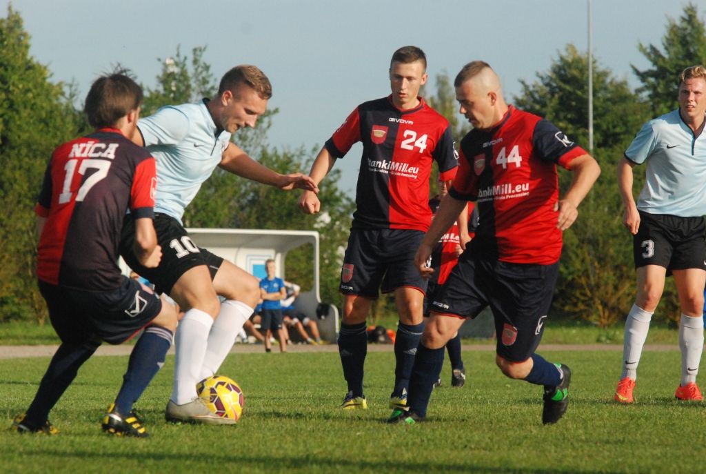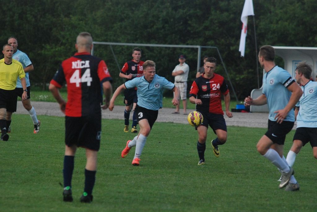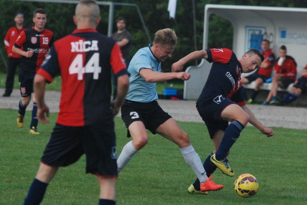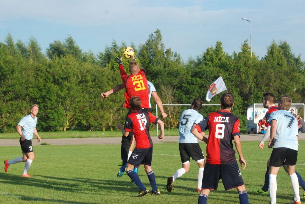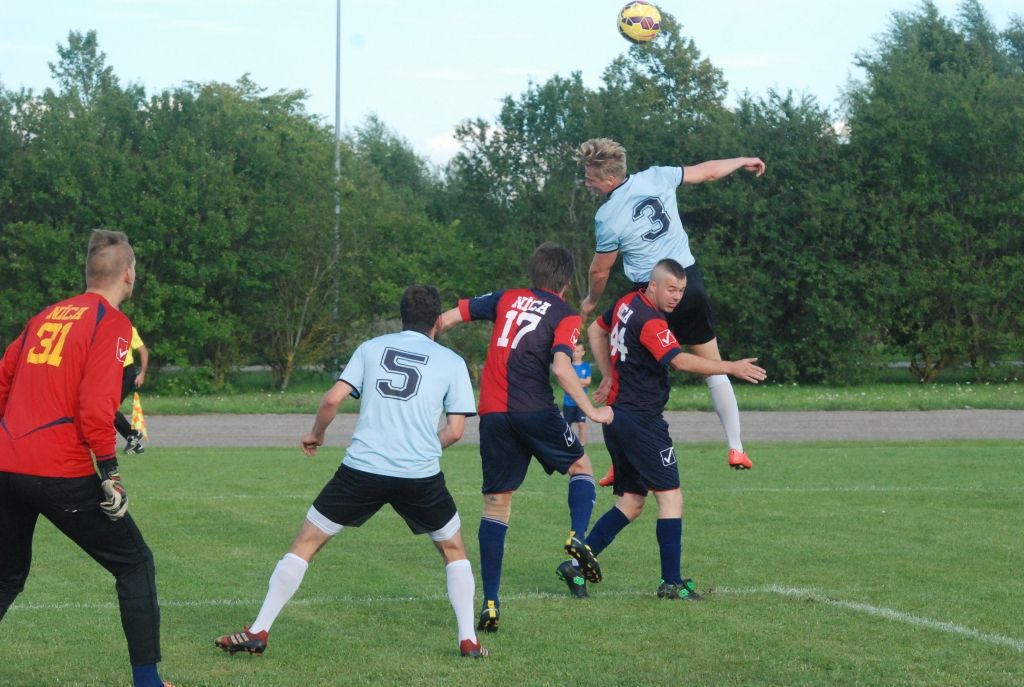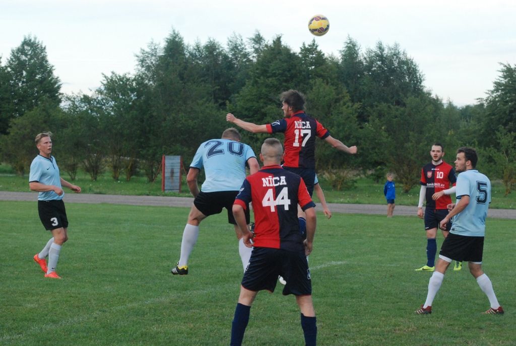 "Grobiņas SC" futbolisti trešdien, 3. augustā, Grobiņas stadionā Latvijas futbola čempionāta otrās līgas spēlē ar 3:0 (1:0) uzvarēja "Nīcu".