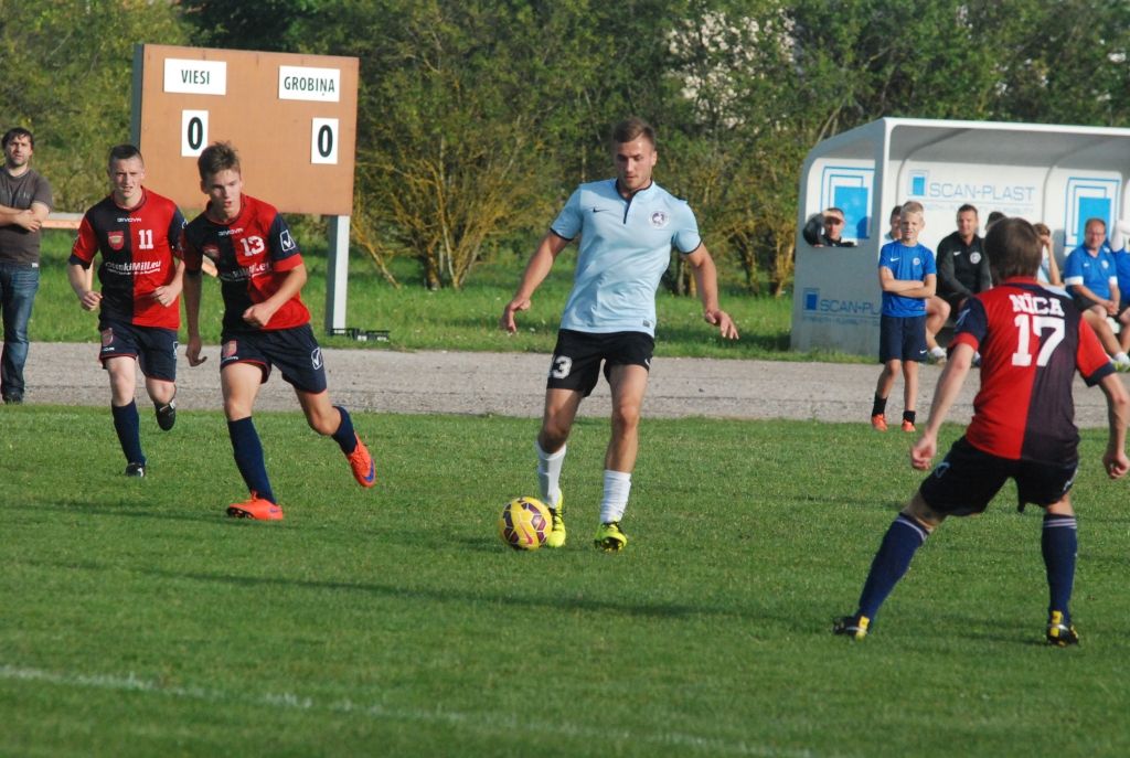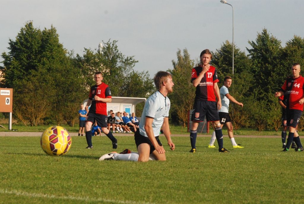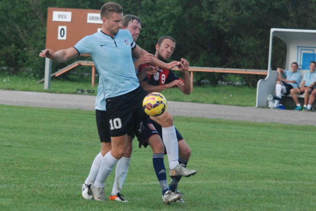 "Grobiņas SC" vienību, kurai visā mačā piederēja pārsvars, 45. minūtē vadībā izvirzīja Ariks Stankus.