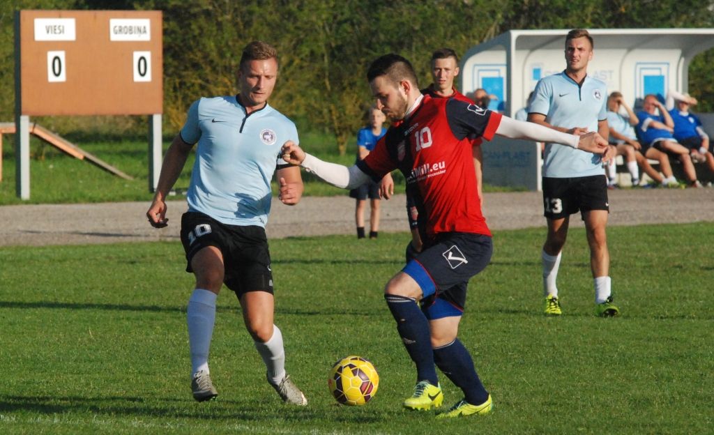 "Grobiņas SC" futbolisti ir otrās līgas Kurzemes reģiona līderi.