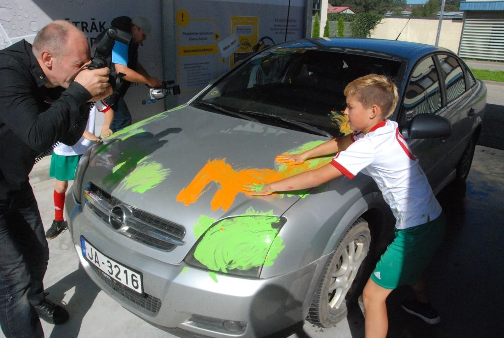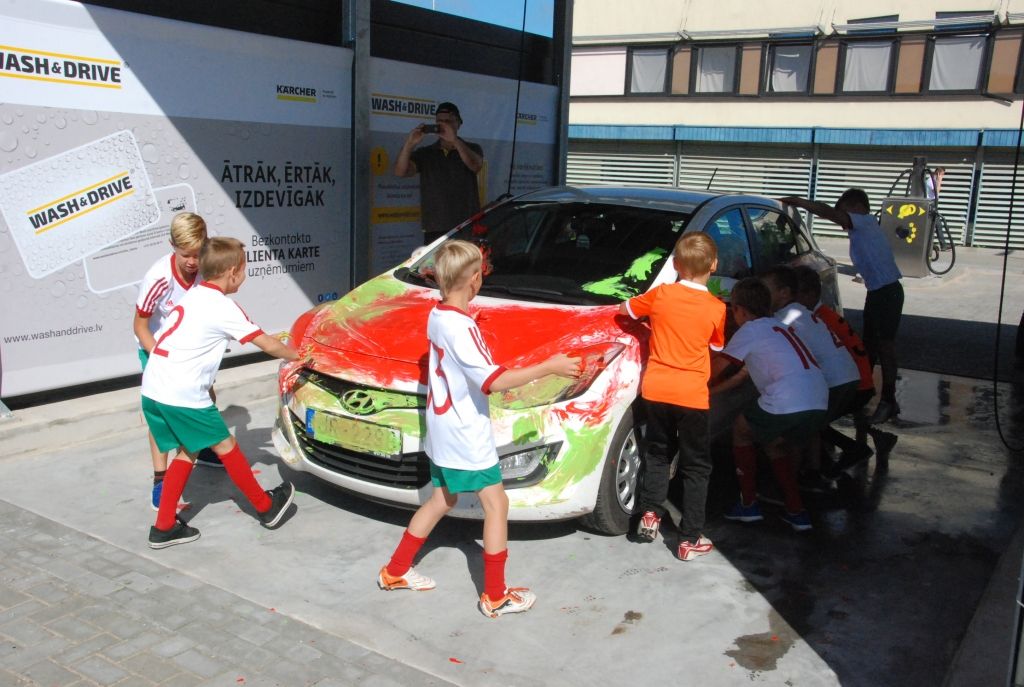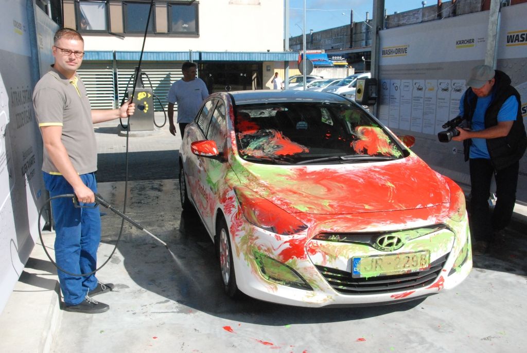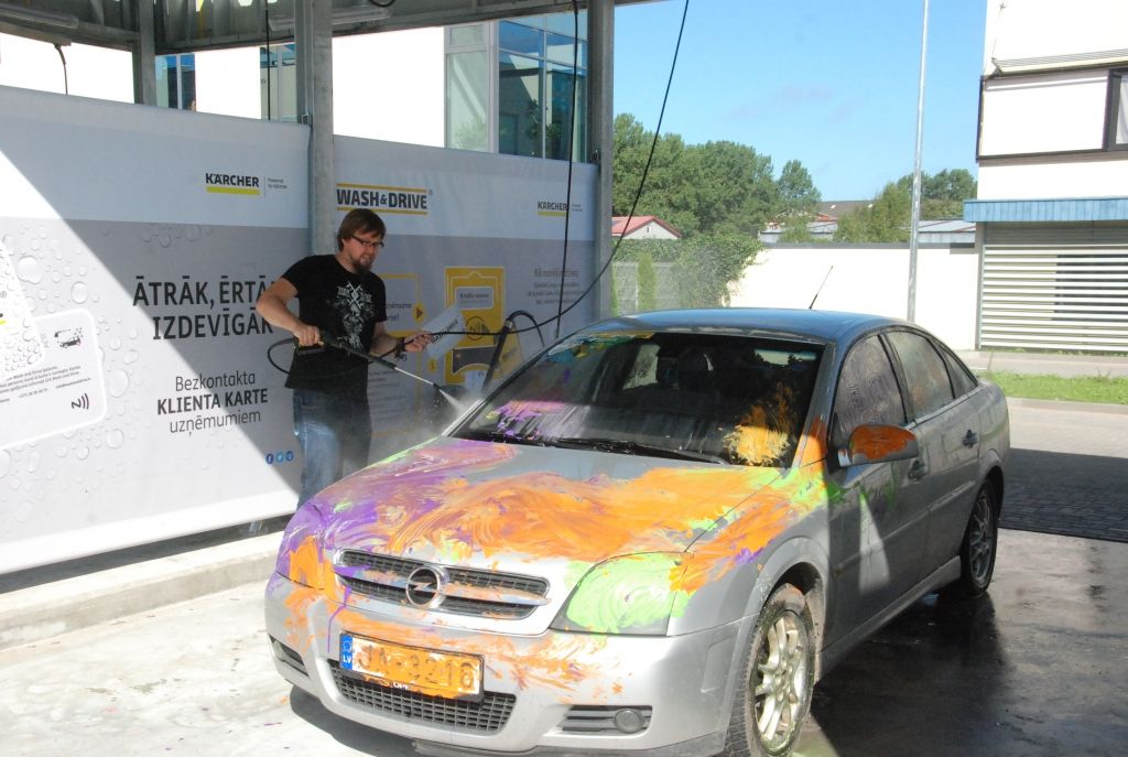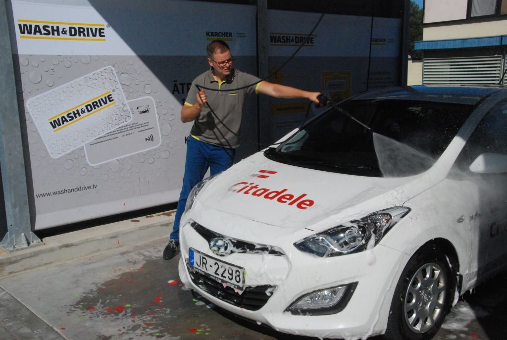 Līdz pulksten 17 ikviens tajā savu auto var nomazgāt bez maksas.