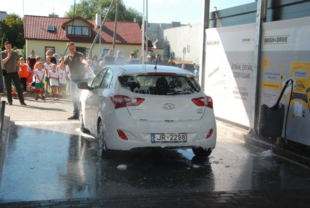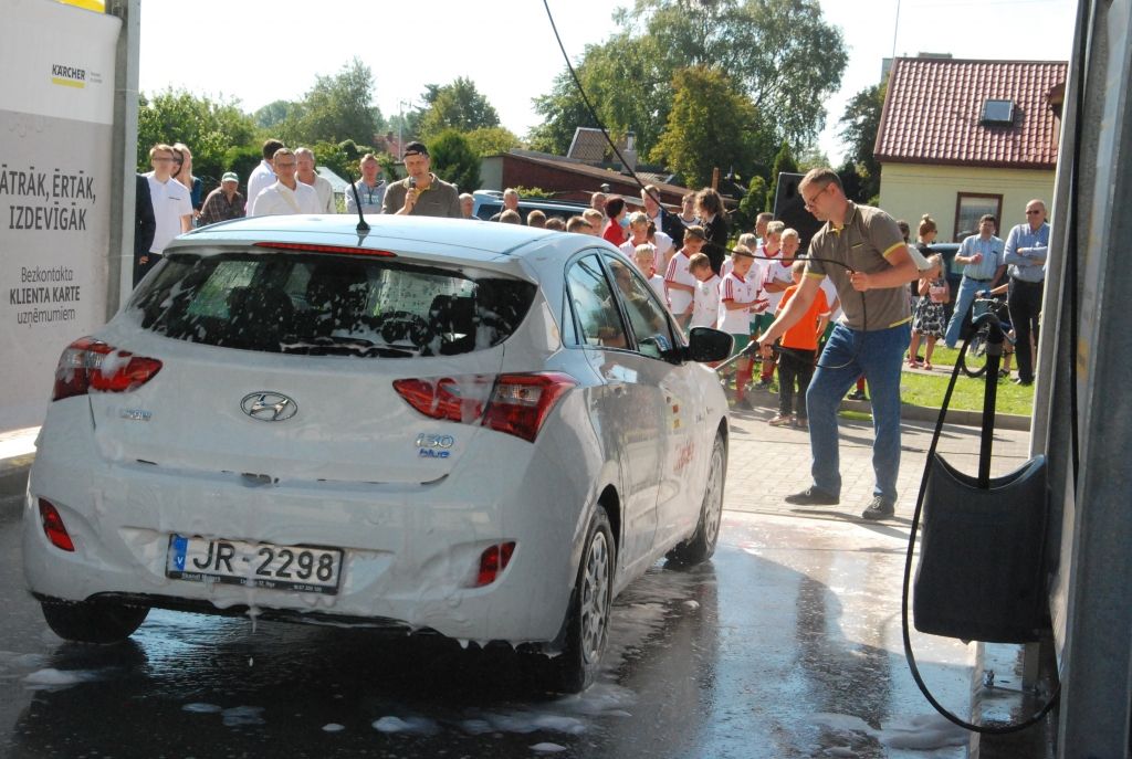 Automazgātuve tika atklāta ar uzņēmuma “Karcher” eksperta paraugdemonstrējumu. Pēc tam futbola kluba "Liepāja" jaunie futbolisti noķēpāja spēkratus auto ātrmazgāšanas sacensībām.Tajās piedalījās laikraksts "Kursas Laiks" un bankas "Citadele" Liepājas filiāles vadītājs Toms Stārosts. Dalībniekus vērtēja mūziķis Ivo Fomins.
