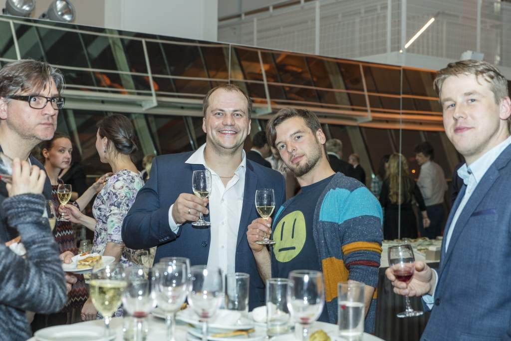 Diriģentu Atvaru Lakstīgalu bija ieradušies sveikt Latvijas kultūŗas ministre Dace Melbārde un Liepājas domes priekšsēdētāja vietnieks Vilnis Vitkovskis. Orķestra vadītājs Uldis Lipskis bija deliģēts nolasīt Latvijas Valsts prezidenta Raimonda Vējoņa sūtītu atzinības rakstu maestro Atvaram Lakstīgalam. Sveicēju vidū bija arī koncertzāles "Lielais dzintars" mākslinieciskā vadītāja Baiba Bartkeviča, Liepājas Latviešu biedrības nama vadītāja Vita Hartmane u.c.