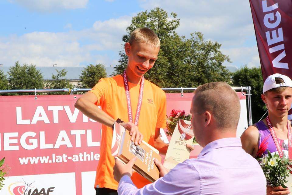 FOTO: Aizputes novada vieglatlēts Artūrs Niklāvs Medveds kļūst par Latvijas čempionu