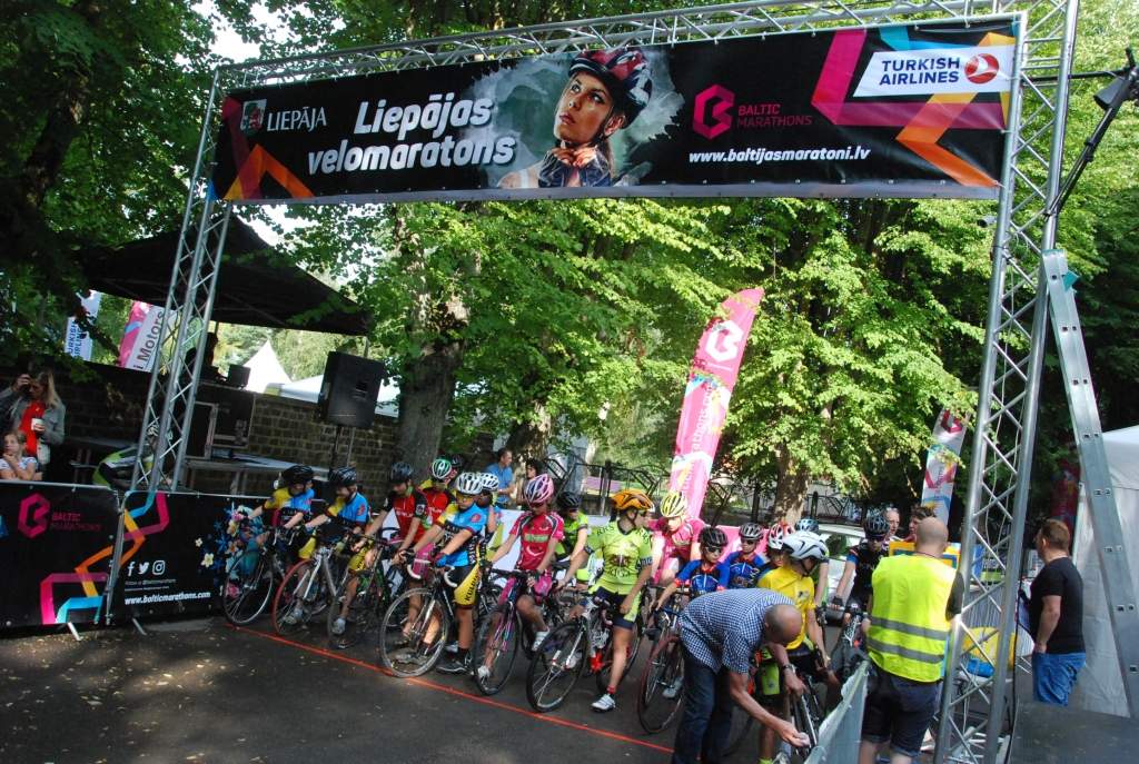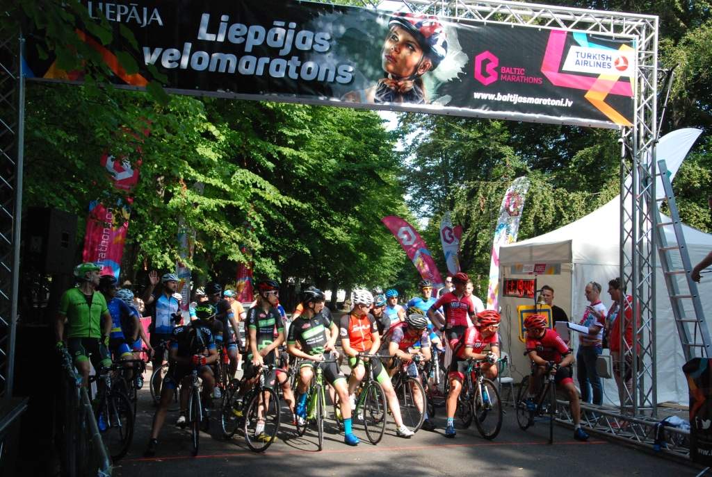 Liepājas velomaratonam šogad starta un finiša zona sestdien, 12. augustā, bija pie koncertdārza "Pūt, vējiņi!", pārceļoties no iepriekšējo gadu mājvietas - Tosmares un Karostas apkaimes. .