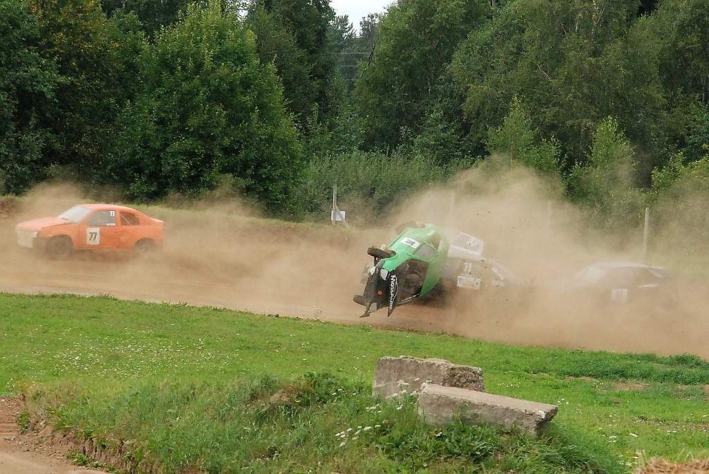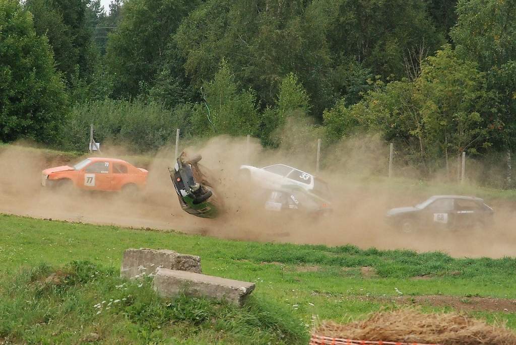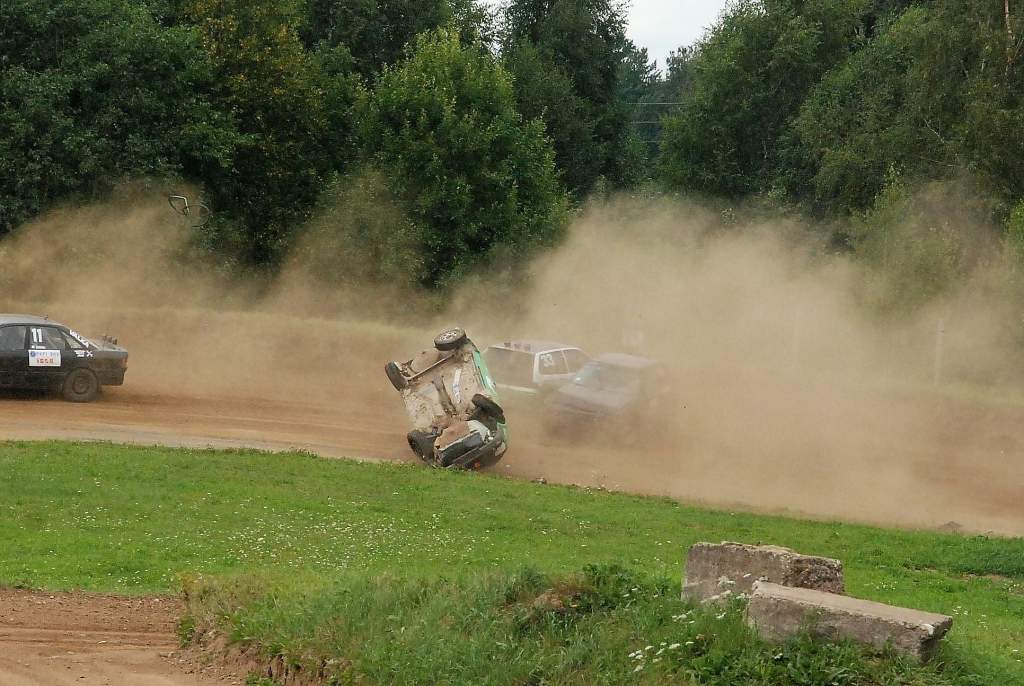 Vecpils autotrasē pagājušajā sestdienā notikušajā Latvijas Automobiļu federācijas folkreisa Vasaras kausa izcīņas piektajā posmā iespaidīgāko avāriju piedzīvoja rīdzinieks Mārtiņš Starks.