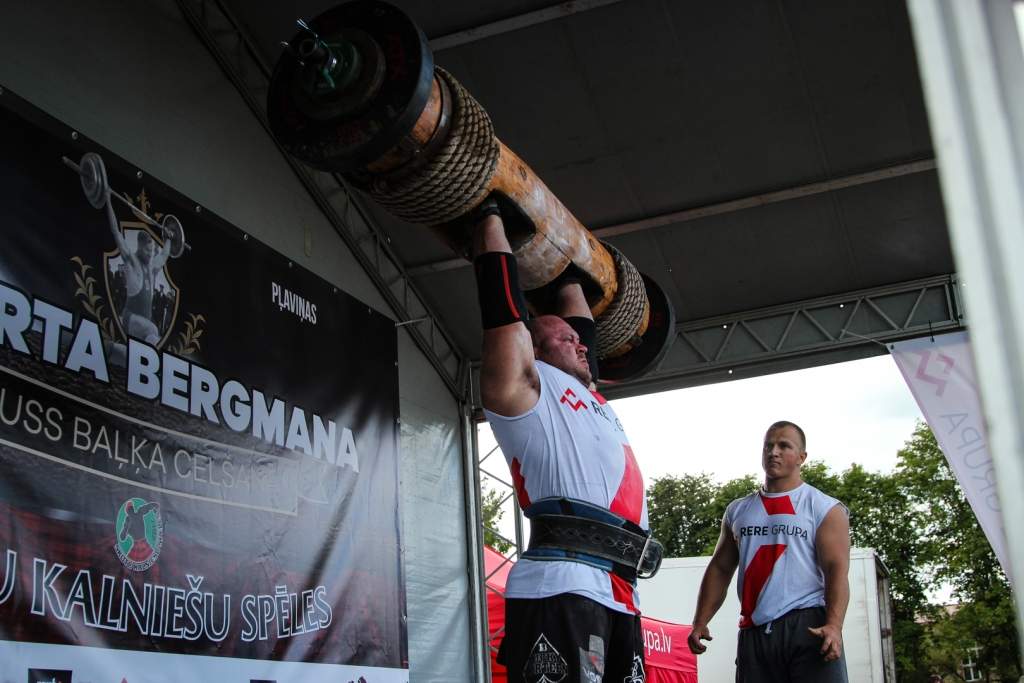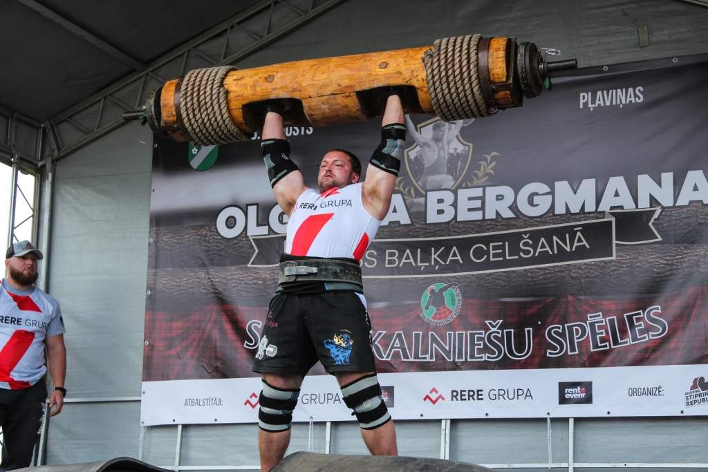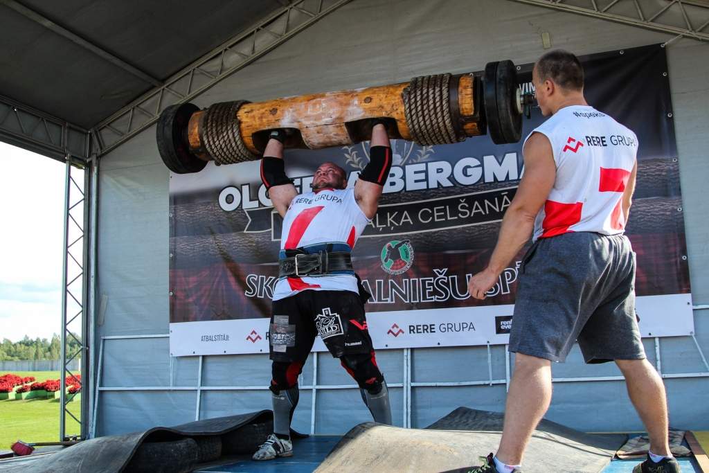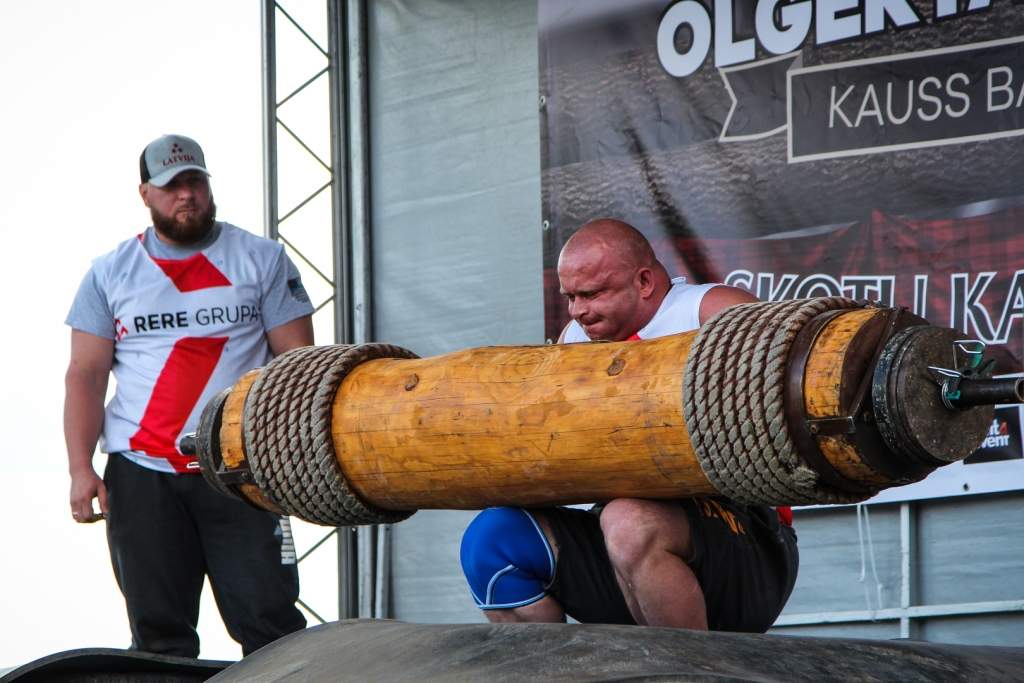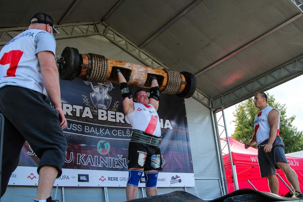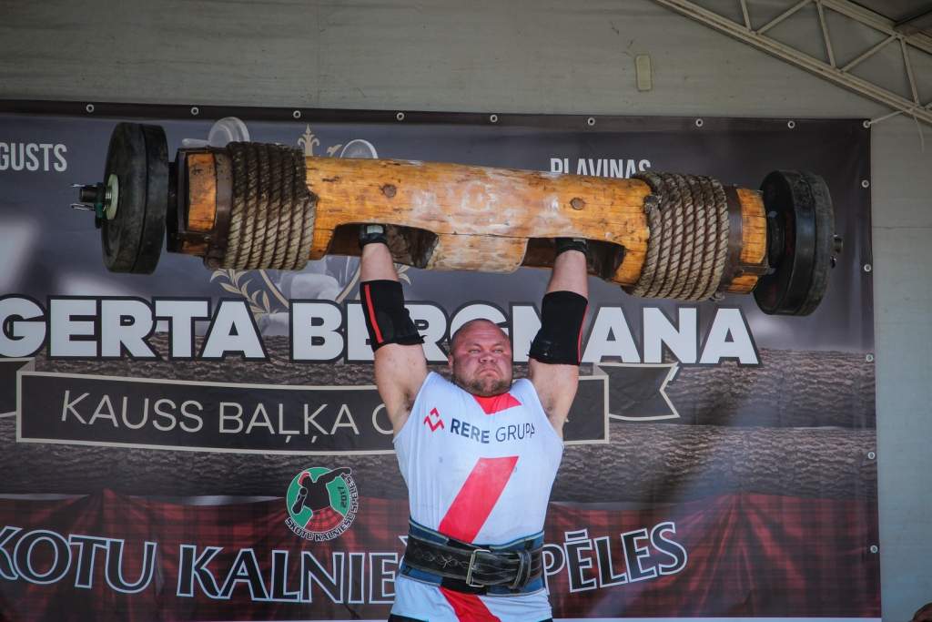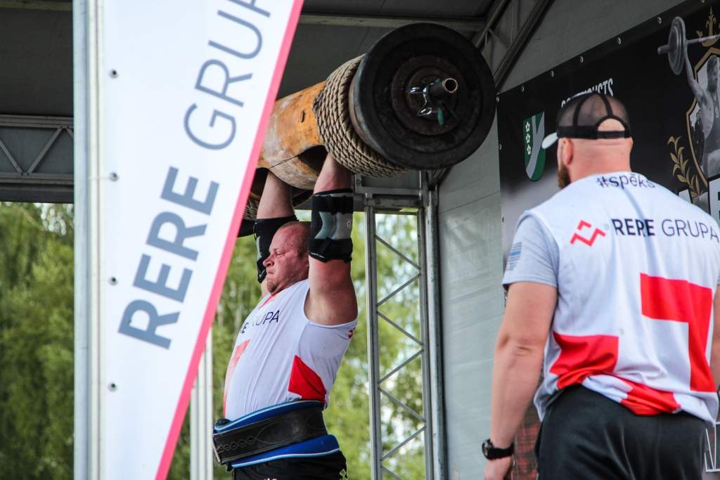 FOTO: Māris Juzups piedalās Latvijas atklātajā spēkavīru čempionātā baļķa celšanā