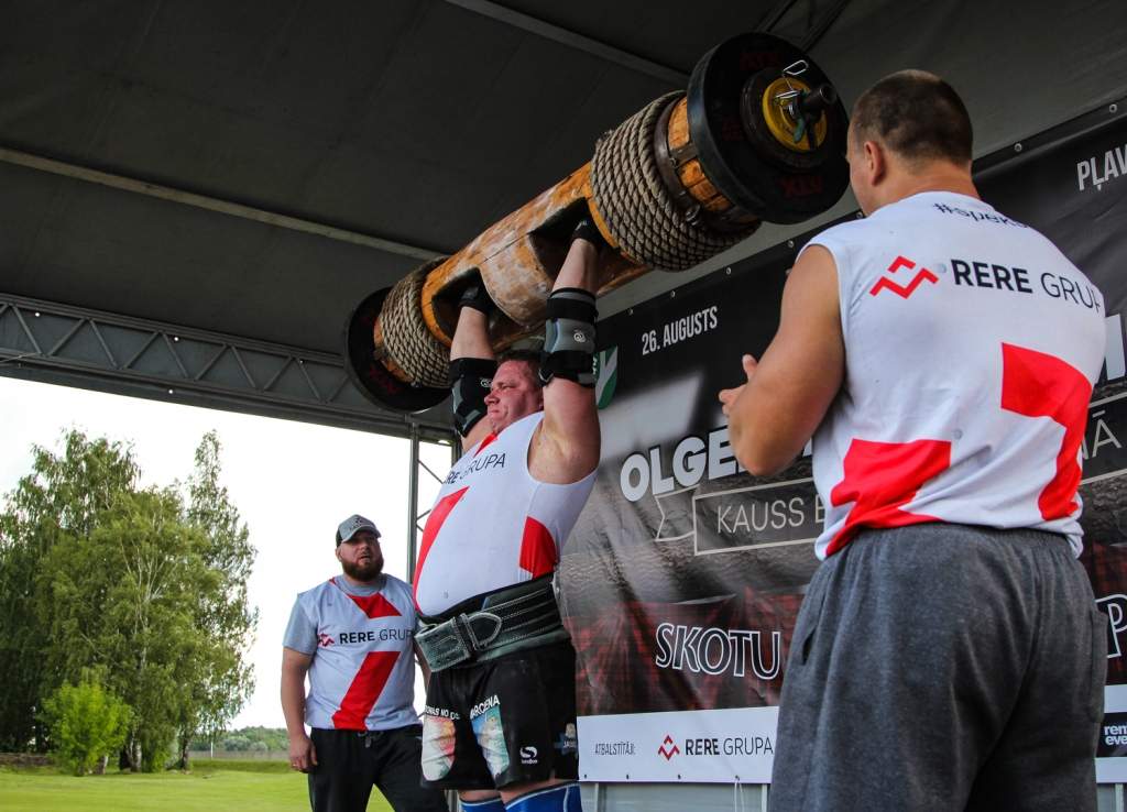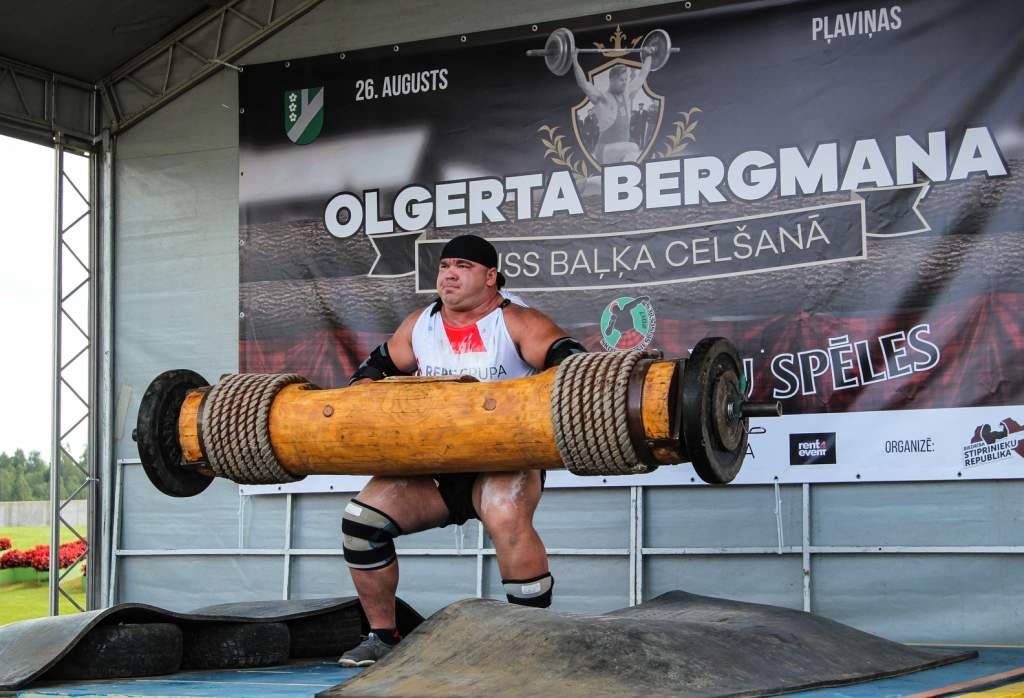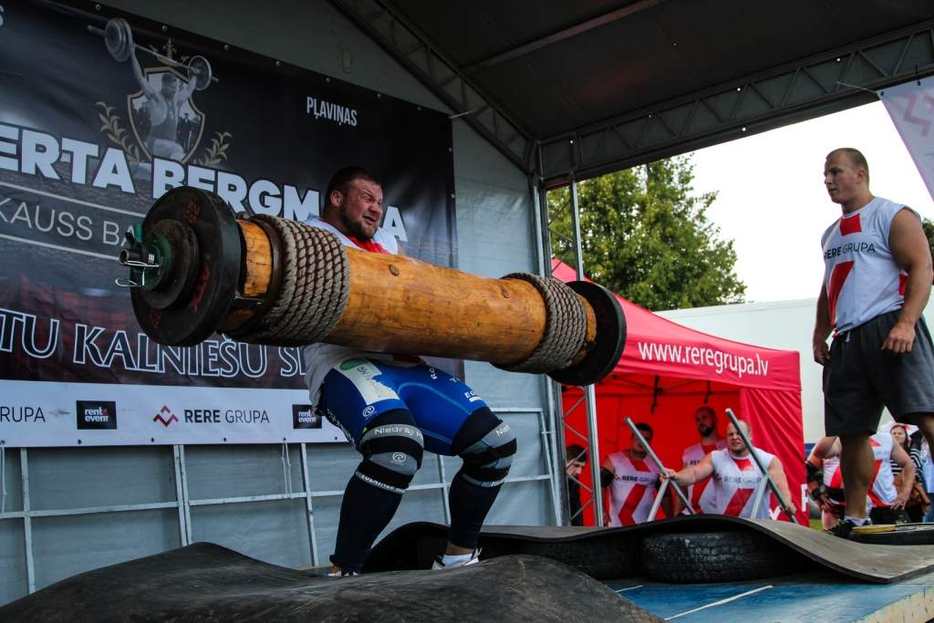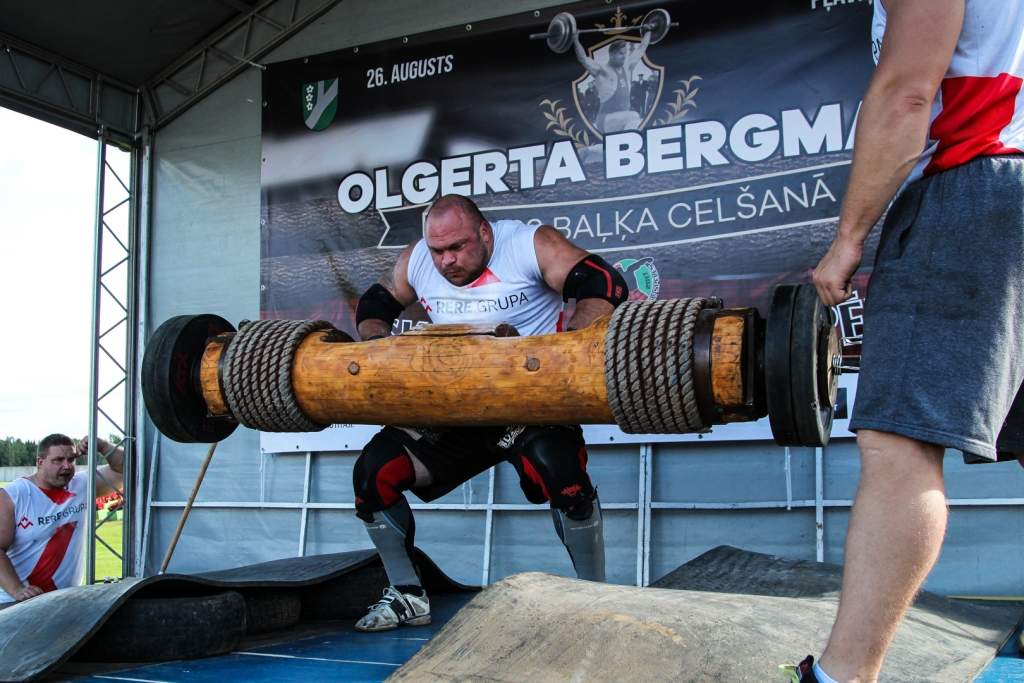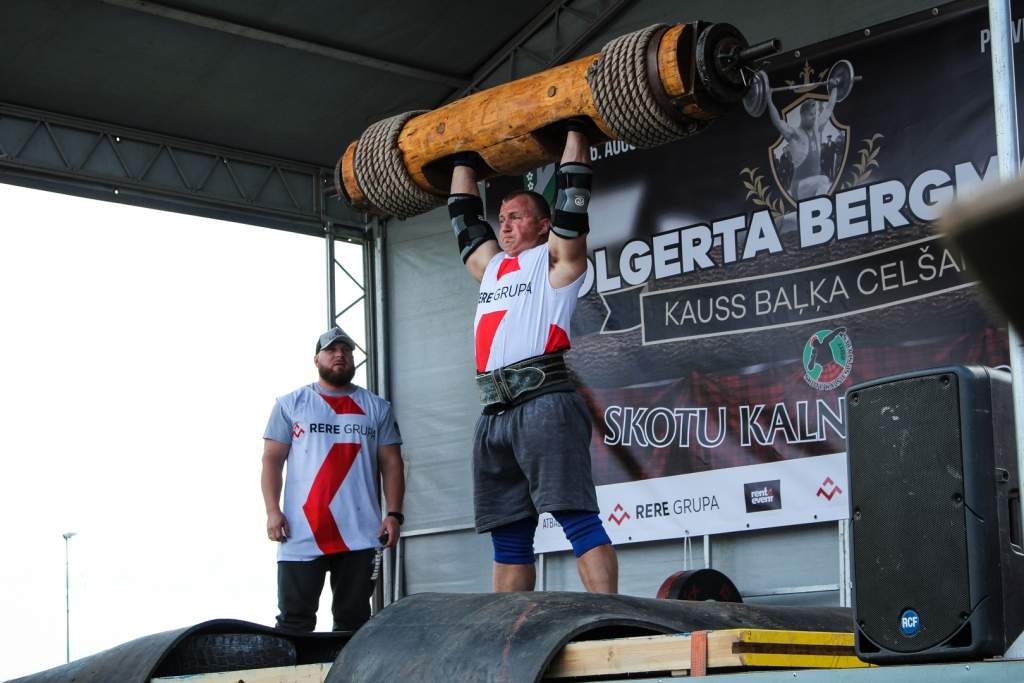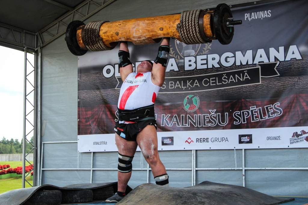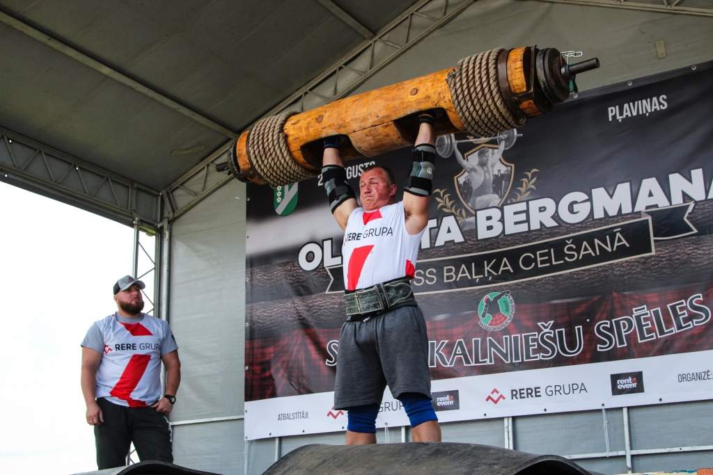 FOTO: Māris Juzups piedalās Latvijas atklātajā spēkavīru čempionātā baļķa celšanā