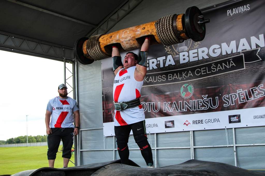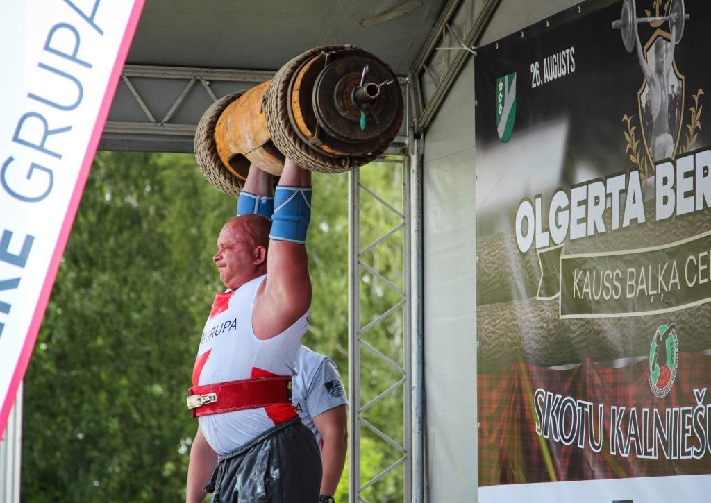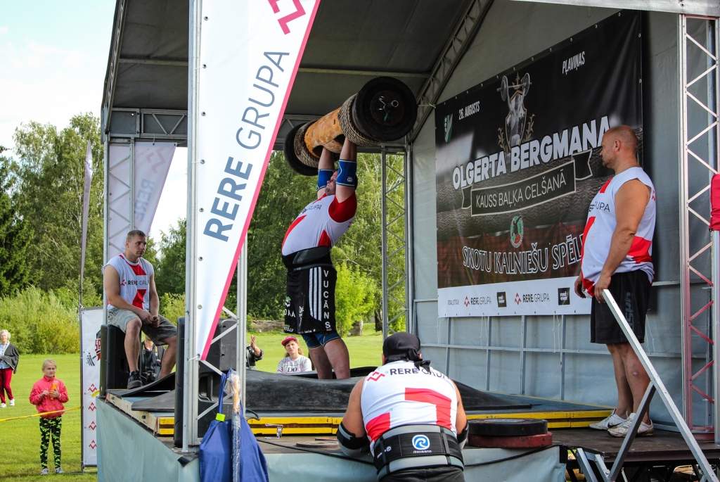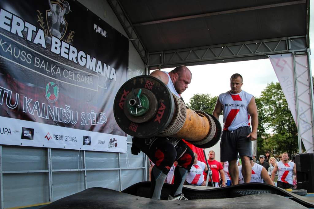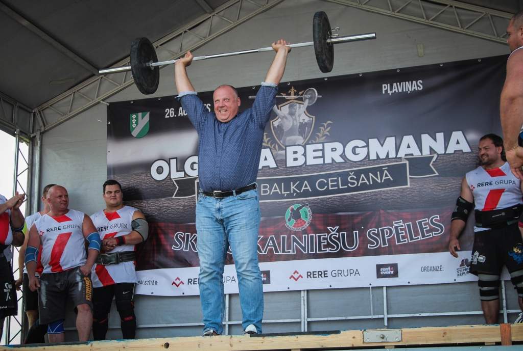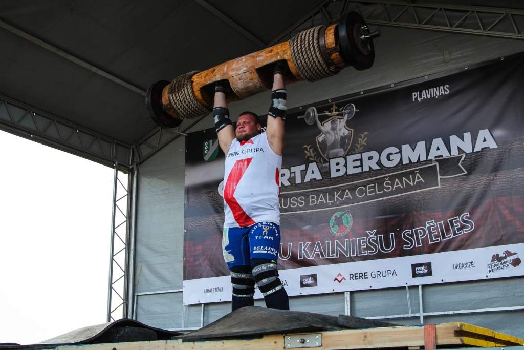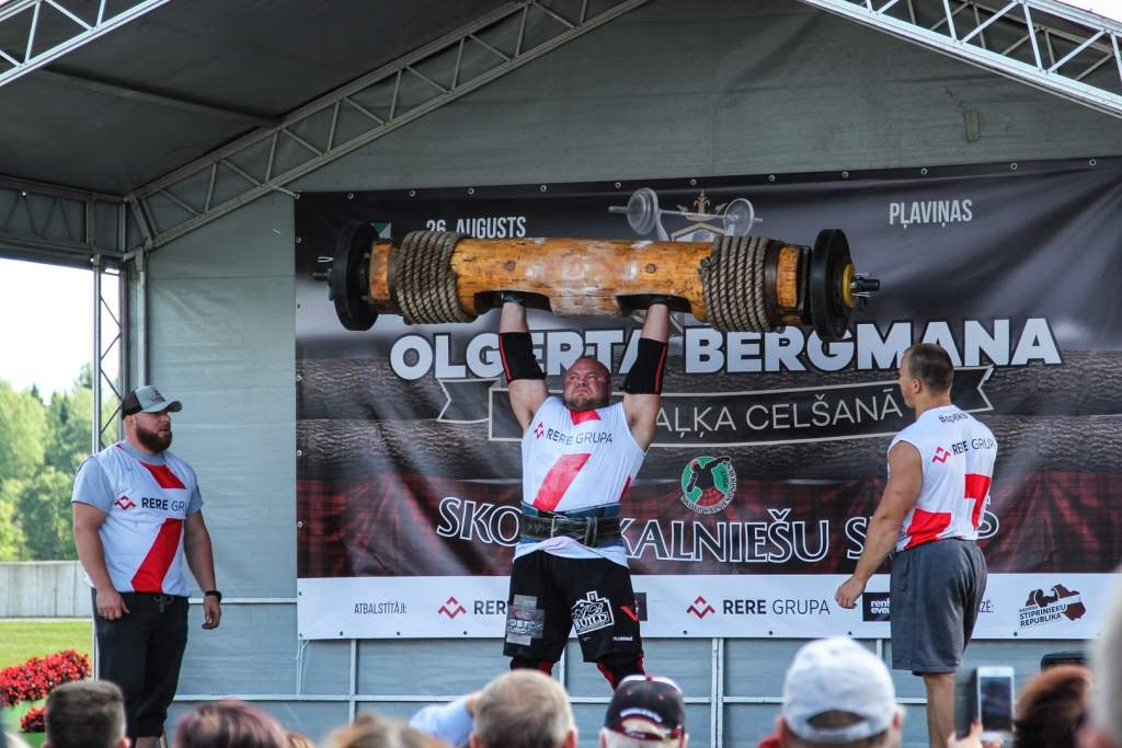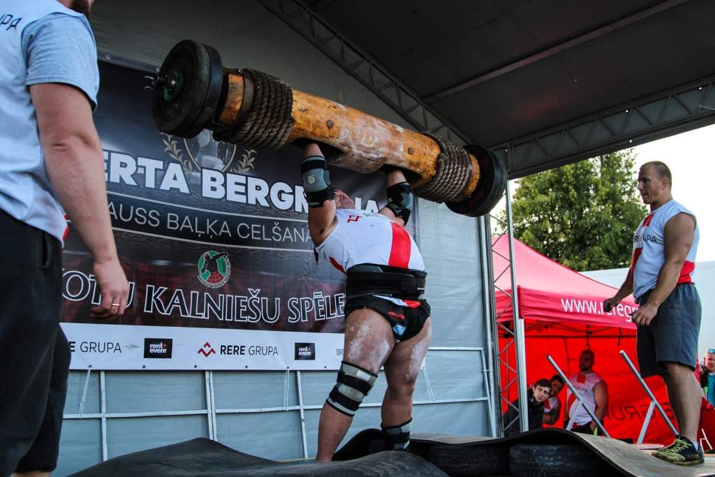 FOTO: Māris Juzups piedalās Latvijas atklātajā spēkavīru čempionātā baļķa celšanā
