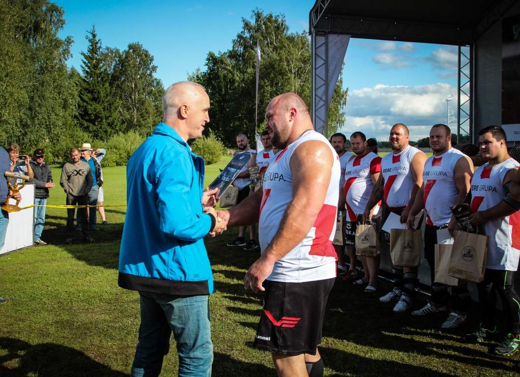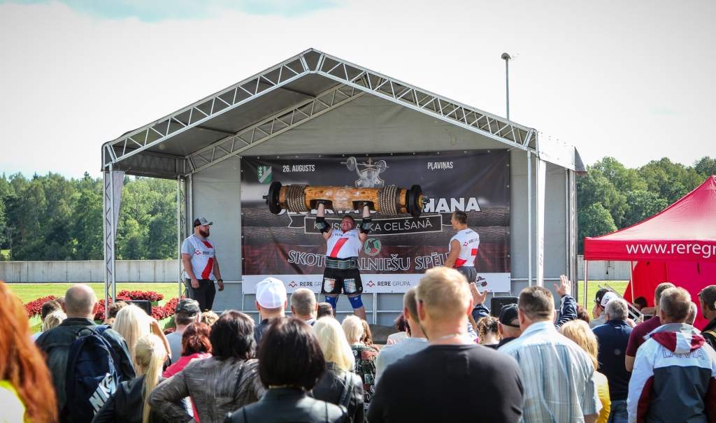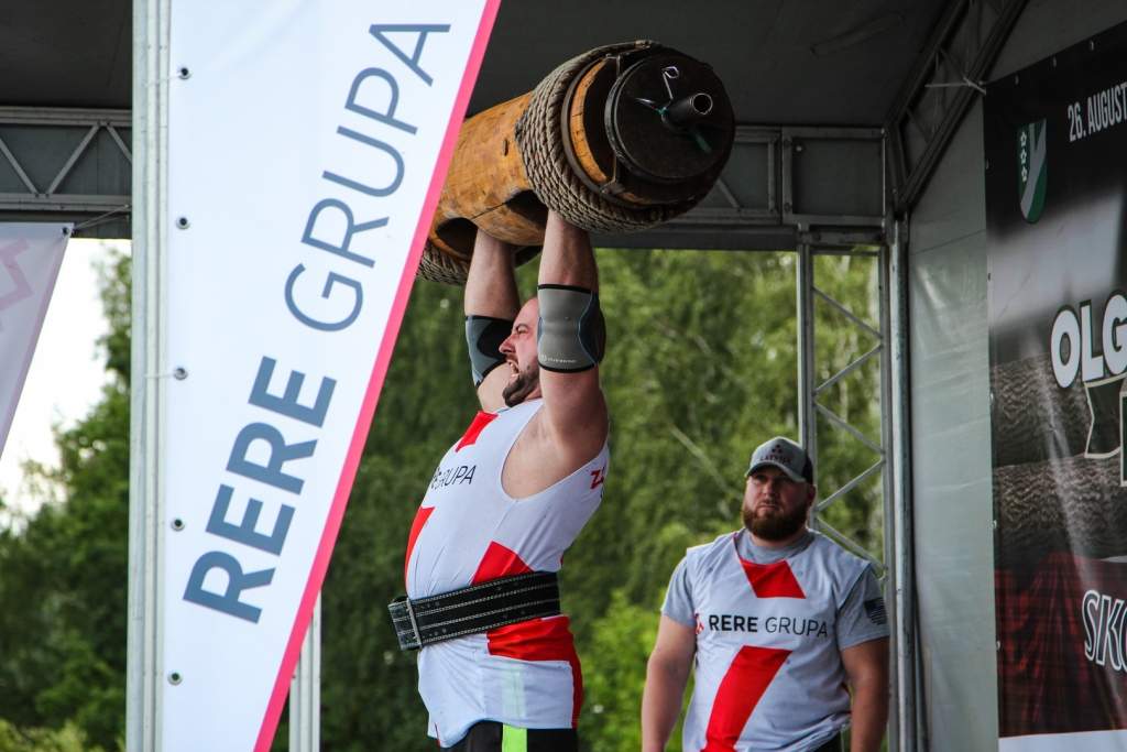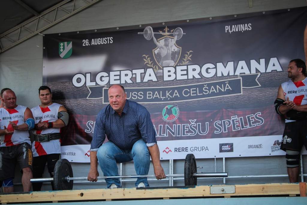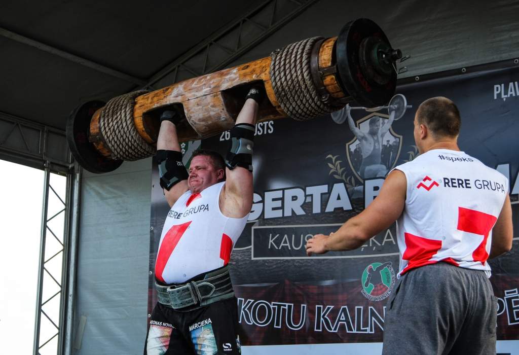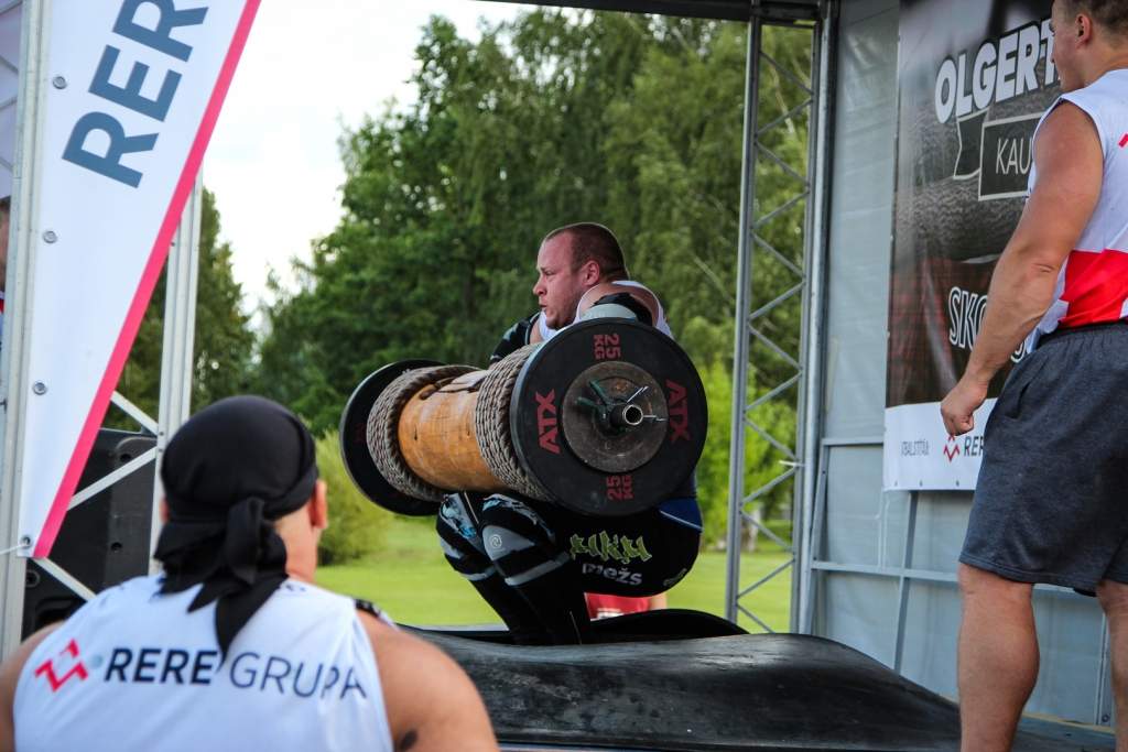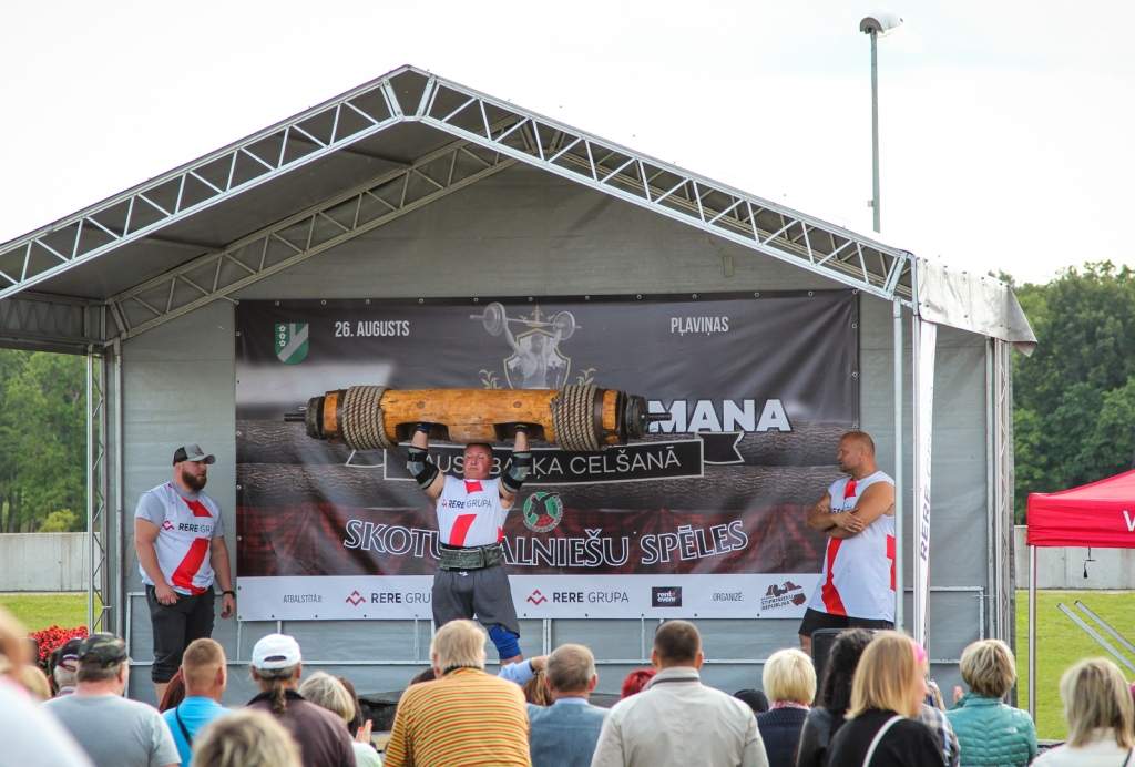 FOTO: Māris Juzups piedalās Latvijas atklātajā spēkavīru čempionātā baļķa celšanā
