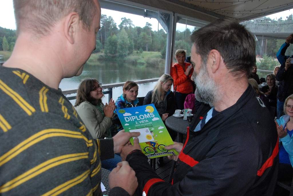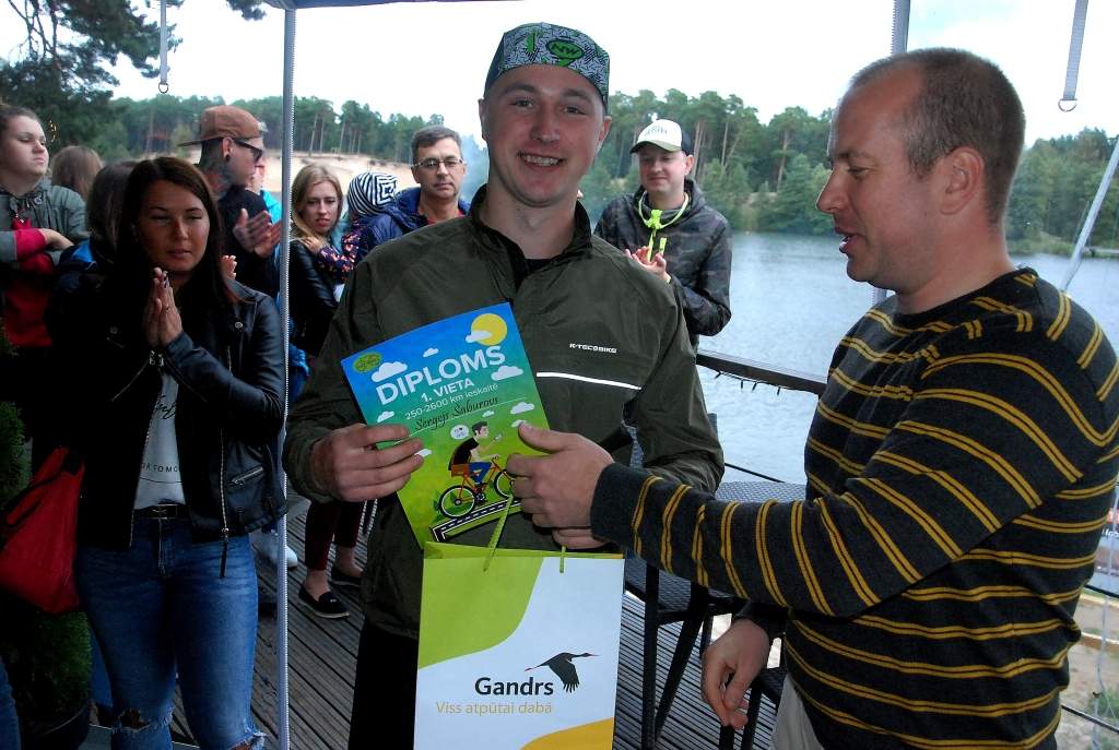 Noslēguma pasākumā notika arī atbalstītāju sarūpēto balvu izloze, uz kurām pretendēja atnākušie izaicinājuma dalībnieki, kuri šovasar bija nobraukuši vismaz 250 kilometrus.