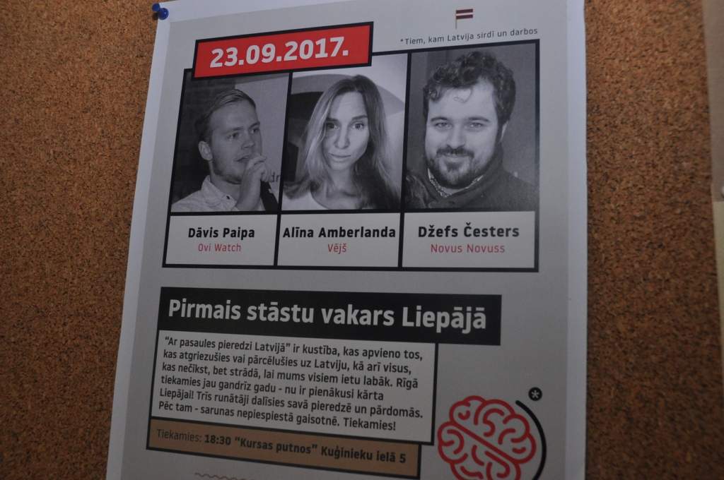 Ar saviem stāstiem un atziņām dalījās liepājnieki Dāvis Paipa, ''Ovi Watch'' līdzdibinātājs un vairāku "startup" pasākumu mentors un rīkotājs un Alīna Amberlanda, kura darba un dzīves pieredzi uzkrājusi, ceļojot pa 7 valstīm.