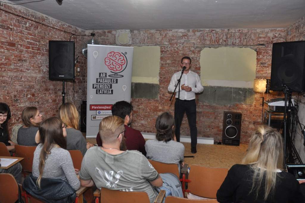 Pasākumu organizēja biedrība "Ar pasaules pieredzi Latvijā". Tā ir domubiedru grupa, kas apvieno cilvēkus ar pasaules pieredzi Latvijā, ar mērķi dalīties ar iegūto, redzēto un sajusto ārpus mājām, lai nestu pienesumu sabiedrības attīstībā un latviskuma saglabāšanā. "Ar pasaules pieredzi Latvijā" pulcē jau ap 1000 grupas biedru, kas Rīgā uz pieredzes stāstu un diskusiju pasākumiem pulcējas ik mēnesi.