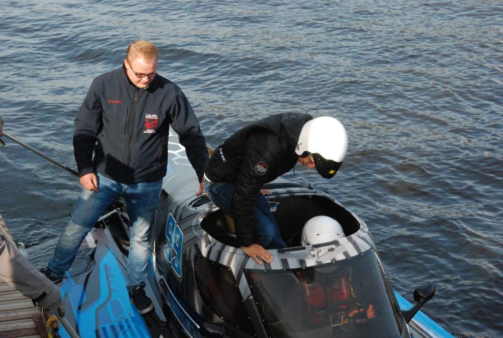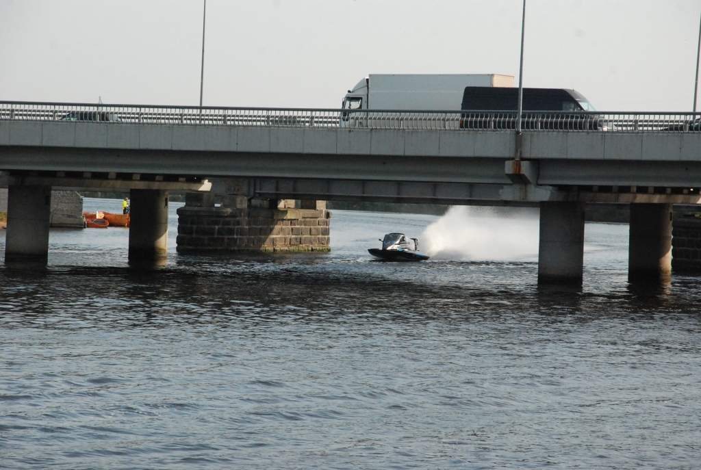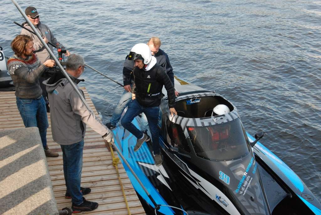 Preses konferences laikā ātrumlaivā M. Bergholcs izvizināja gan rallistus Ralfu Sirmaci un Mārtiņu Sesku, gan Ātruma festivāla organizatoru Uldi Hmieļevski un mediju pārstāvjus.