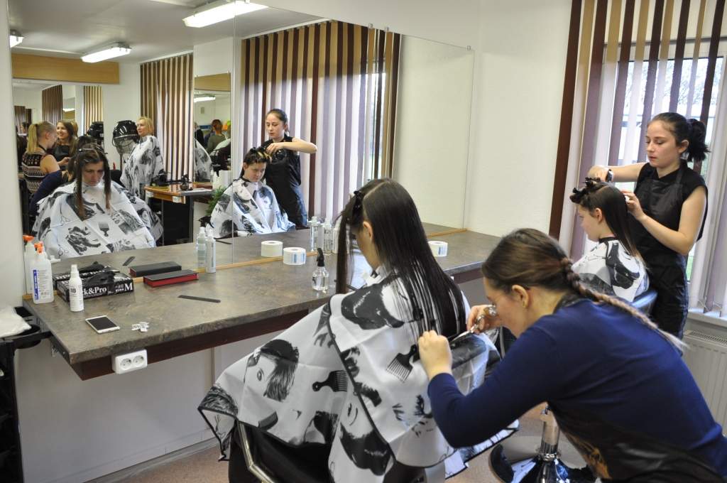 studiju korpusā Vānes ielā ierīkota mācību frizētava un klase. “Bez