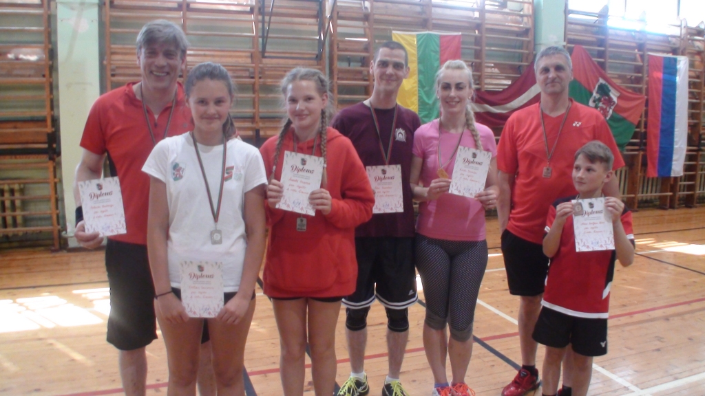 Pēc saspringtiem jauniešu mačiem sacensības turpināja jaunums pilsētas badmintonā - ģimenes dubultspēles, kur medaļas tika sadalītas trijās meistarības grupās: