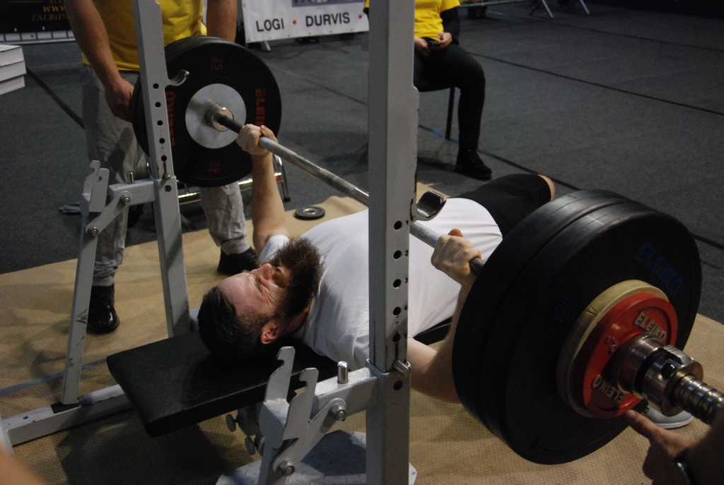 FOTO: Pēc 12 gadu pauzes Liepājā sacenšas svara stieņa spiešanā guļus