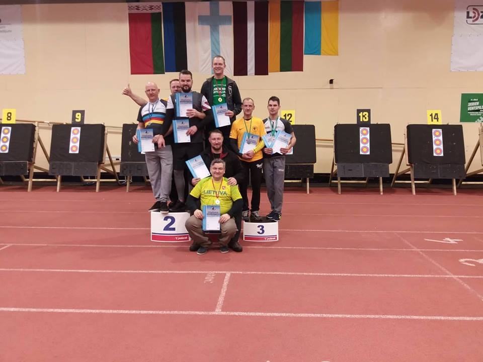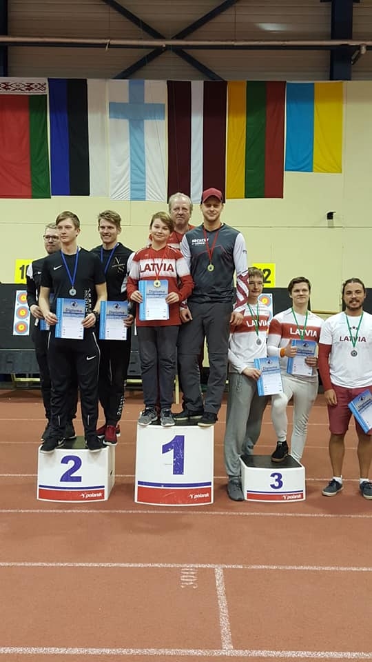FOTO: Liepājas apkaimes loka šāvēji iespaidīgi startē Baltijas čempionātā telpās