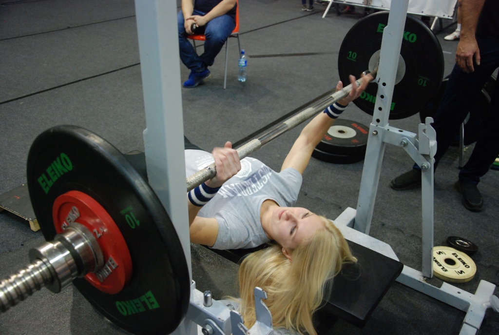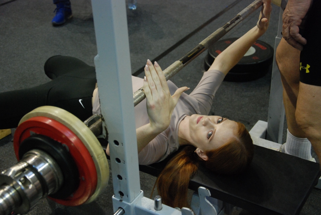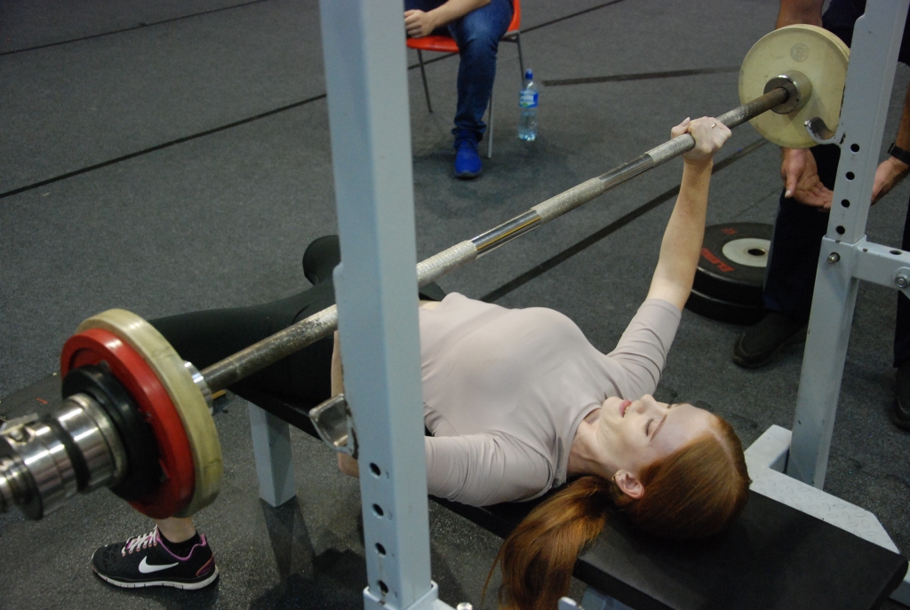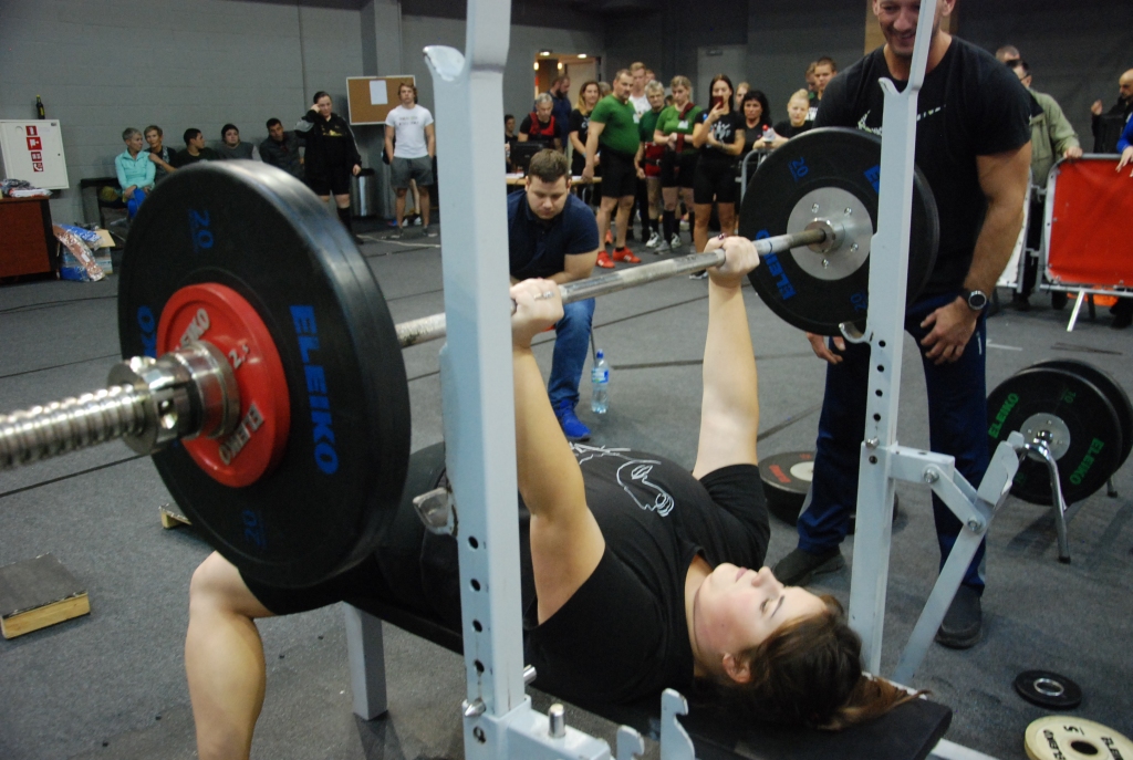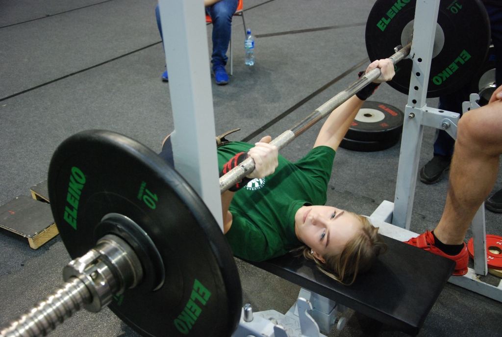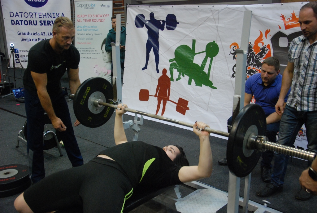 FOTO: Dāmas un vīri noskaidro Liepājas čempionus svara stieņu spiešanā guļus