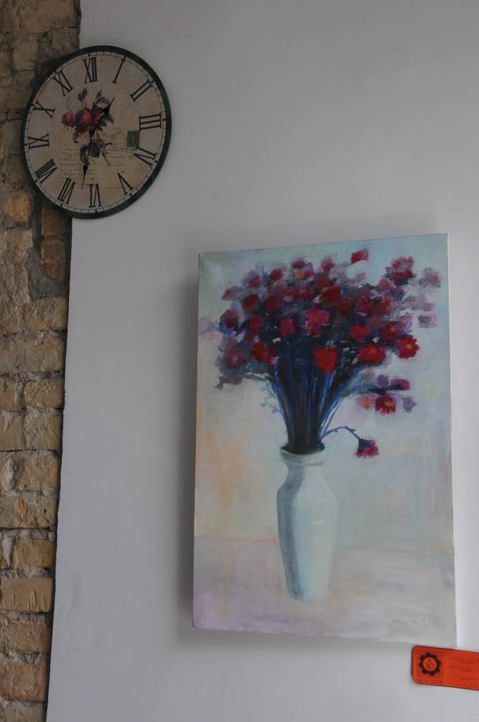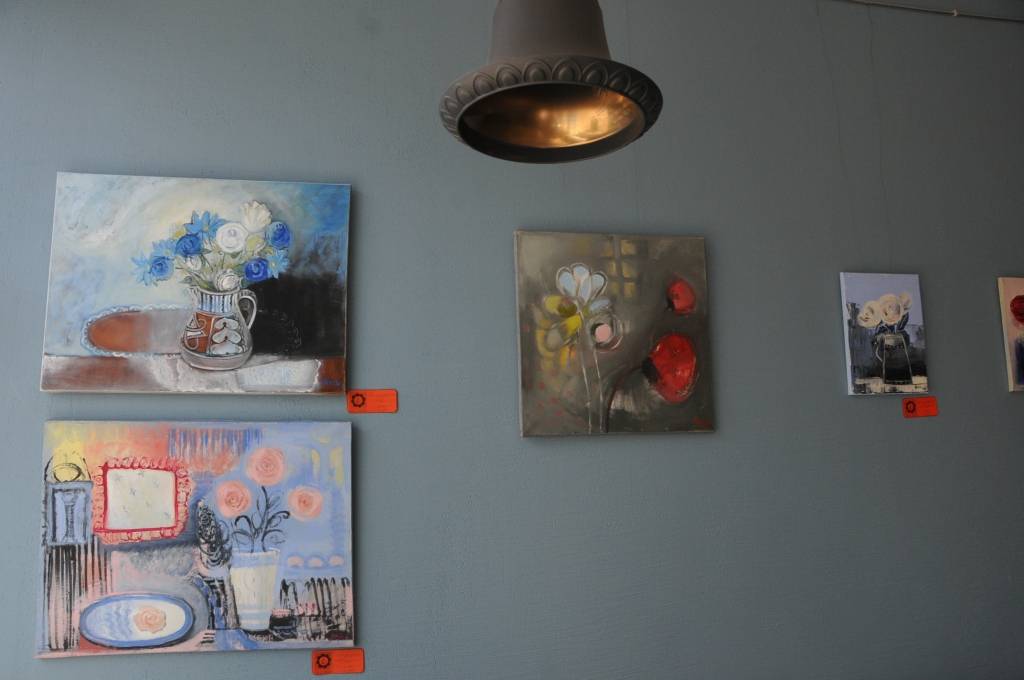 Kopumā kafejnīcā izstādīti 34 darbi un pārstāvēti desmit autori.