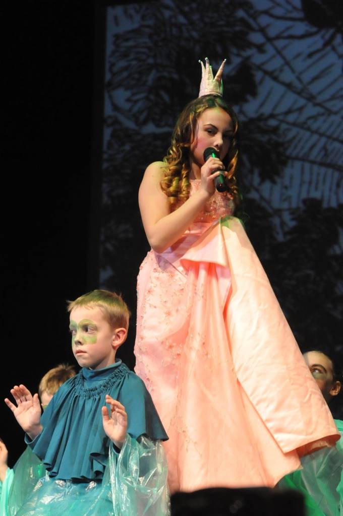Skolas direktore Iveta Kalniņa saka, ka uzvedumā iesaistīti visi 130 skolēni un skolotāji, bet scenāriju veidoja skolotāja Antra Zommerfelde pēc Māras Zālītes rokoperas un Hansa Kristiana Andersena darba motīviem, komponista Raimonda Paula mūziku izrādē ievija Anda Karule un Ēriks Bukants, tērpus palīdzēja šūt kā vecāki, tā skolotāji, ar daudziem tērpiem atbalstīja Liepājas teātris. Palīdzēja arī citi atbalstītāji.