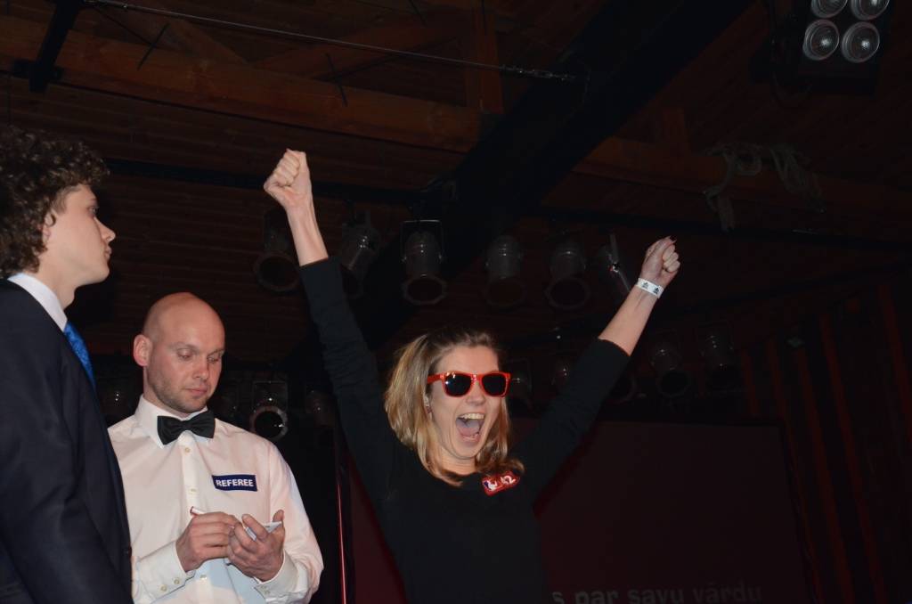 PAPILDINĀTS AR BILDĒM. Ādažniece Kristīne Dzedule sestdien, 9. martā, Liepājas klubā "Fontaine Palace" uzvarēja "AŠP" jeb Akmens, šķēres, papīrīt's čempionātā. Viņa čempionāta vēsturē kļuva par pirmo daiļā dzimuma pārstāvi, kurai izdevies kļūt par čempioni.