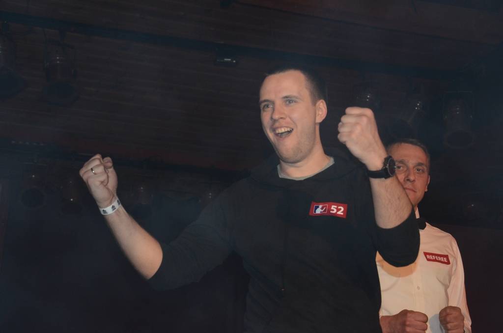 Pagājušā gada čempions, liepājnieks Artūrs Čukurs jeb Students pirmajā kārtā prata atspēlēties pret viesi no Skotijas, bet izstājās jau otrajā kārtā, zaudējot Laurai Druvai.