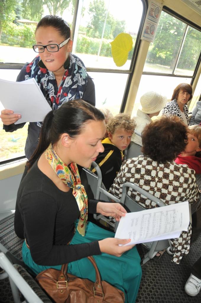 Ceturtdien, 27. jūnijā, "Kultūras tramvajā" Dziesmu svētkus ieskandināja Liepājas Tautas mākslas un kultūras centra kori.