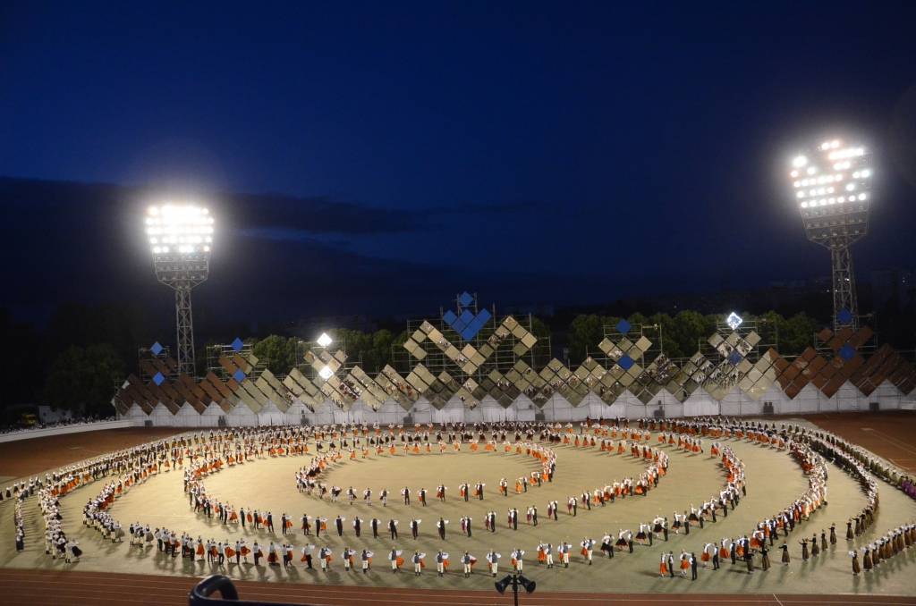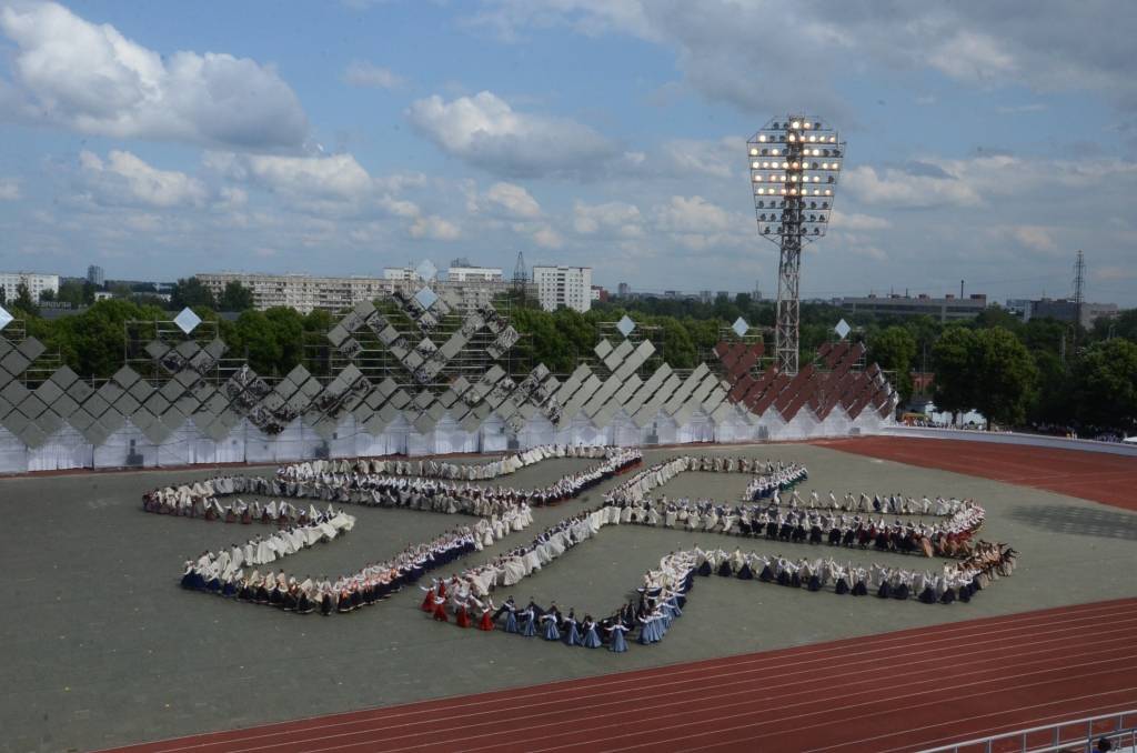 FOTO: XV Deju svētku lieluzvedumā "Tēvu laipas" izdejo latvju rakstus un zīmes