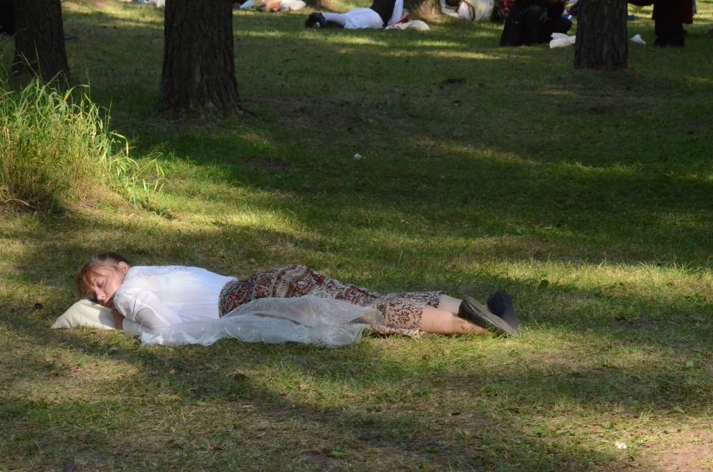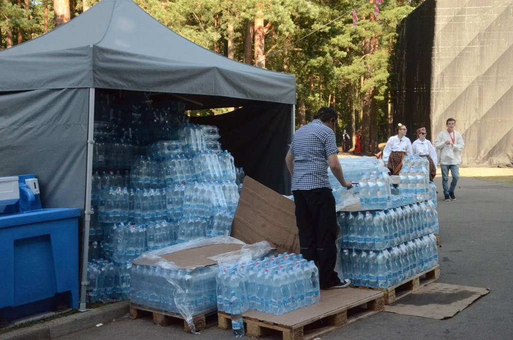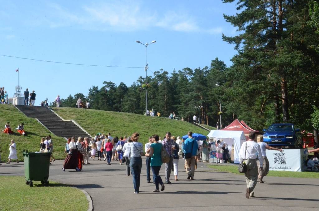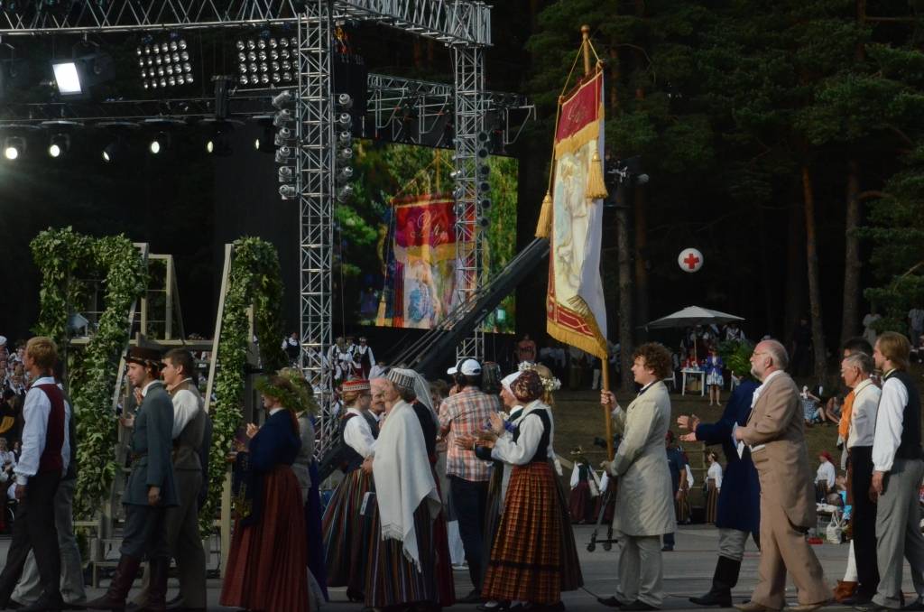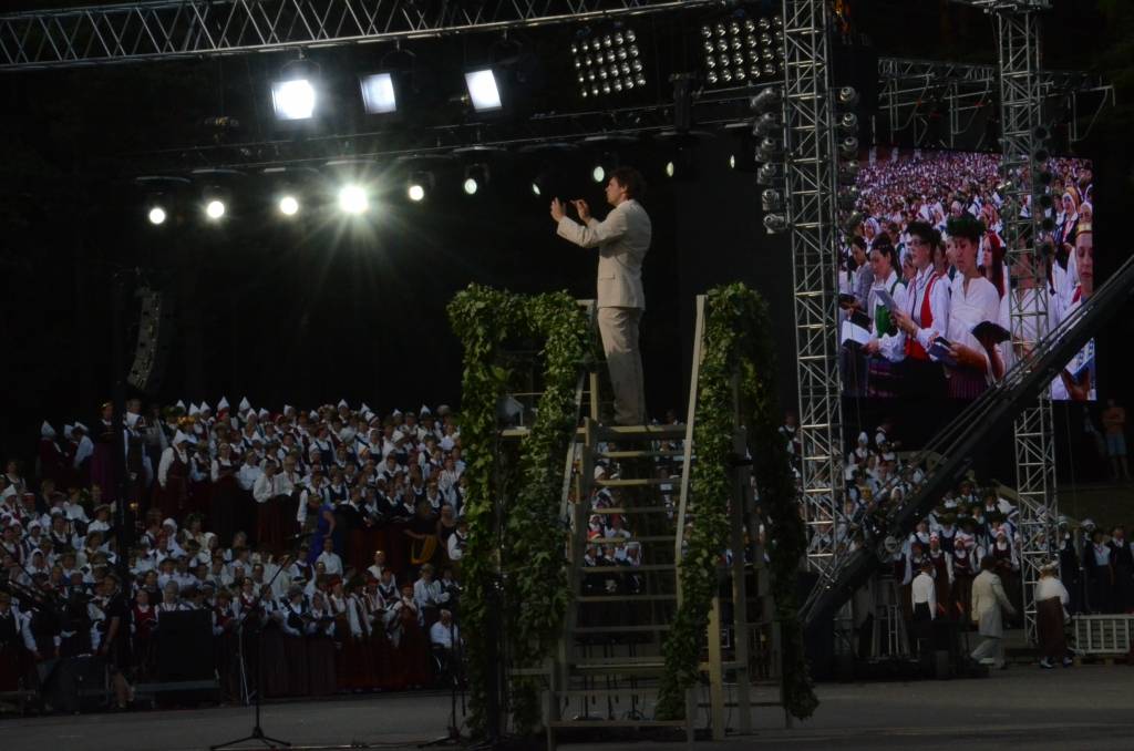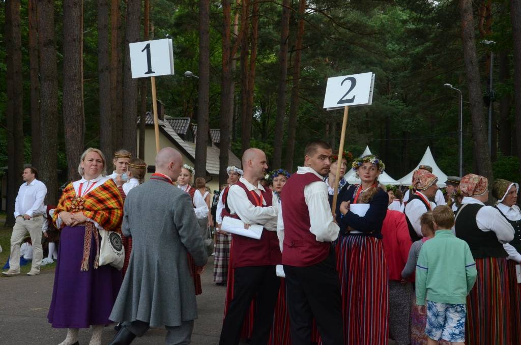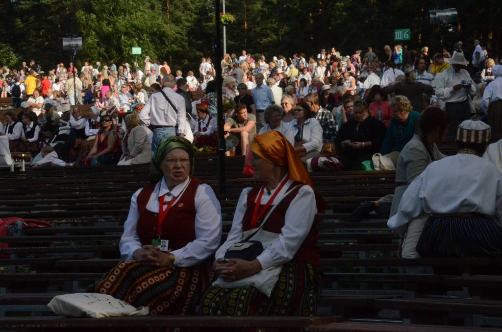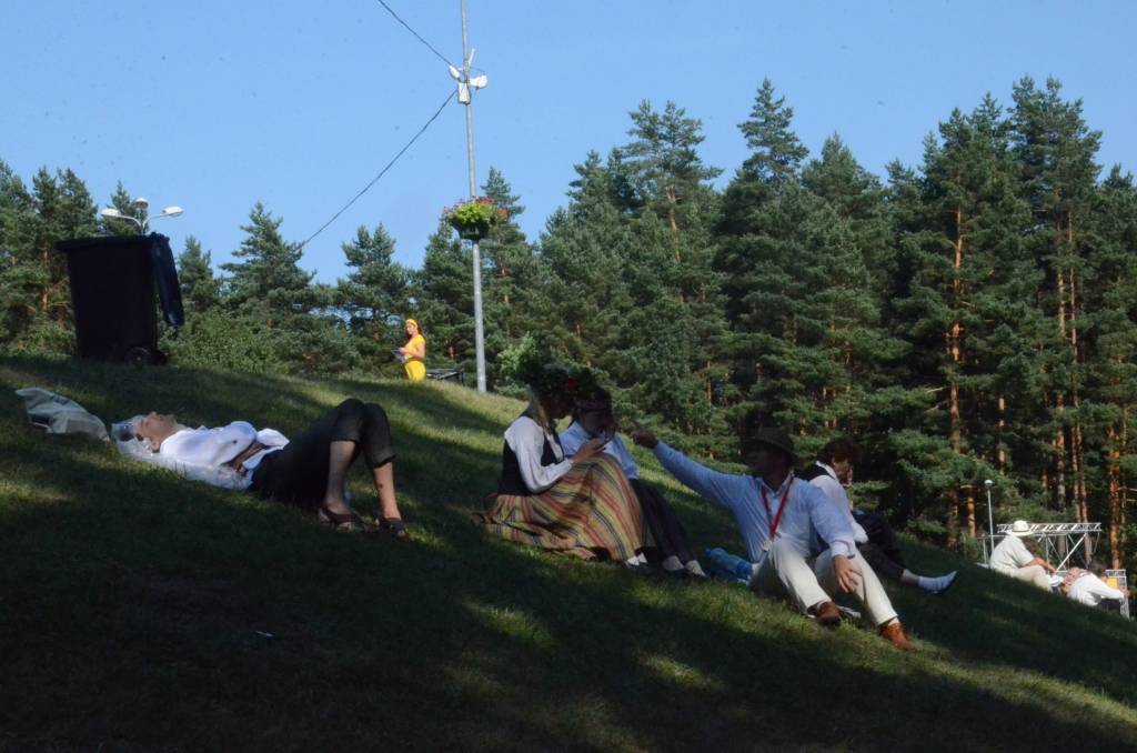 FOTO: Mežparka estrādē dziedātāji atpūšas un izdzied XXV Vispārējo latviešu Dziesmu svētku koncertu "Līgo"