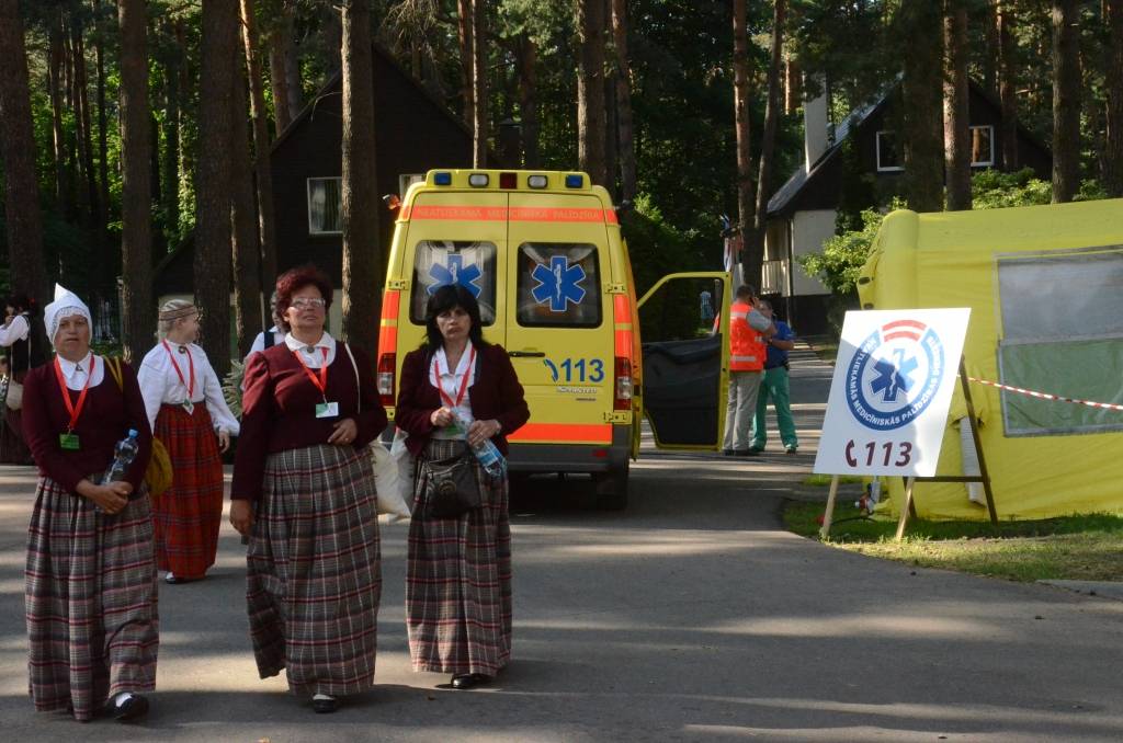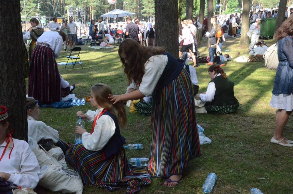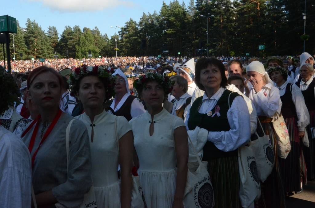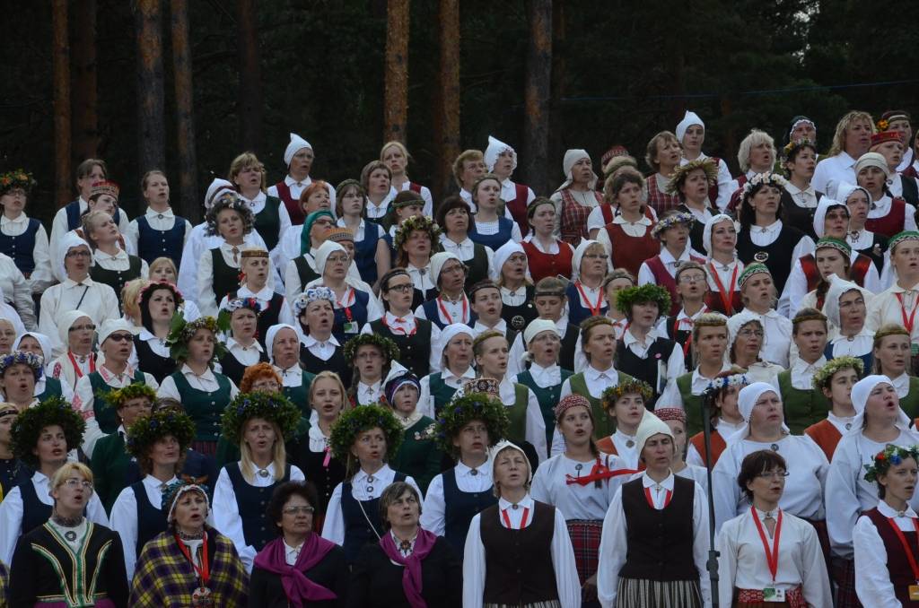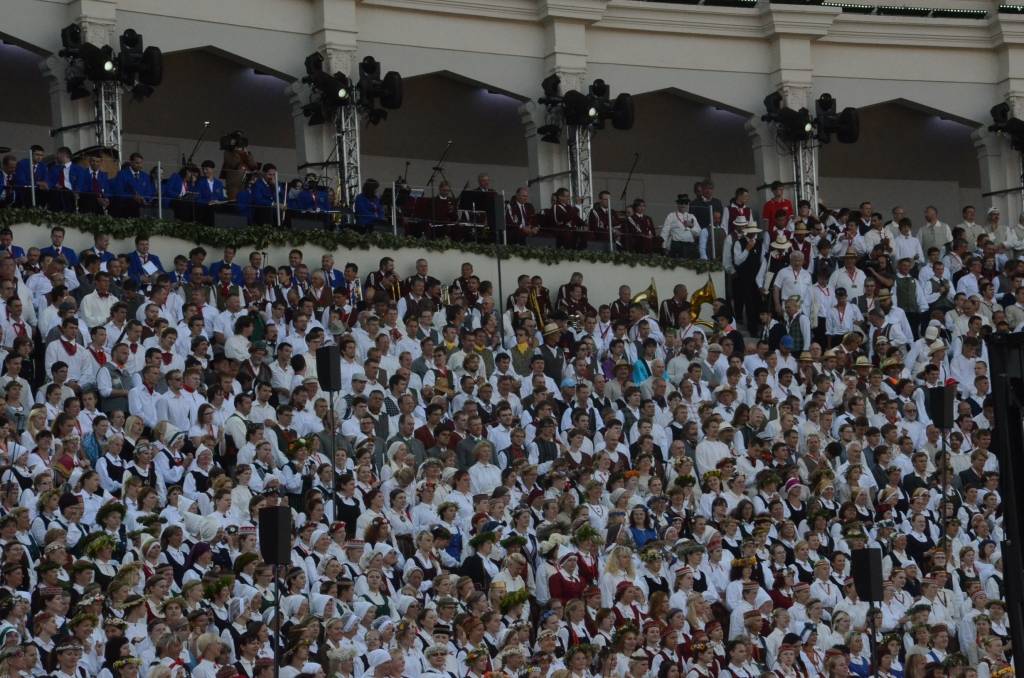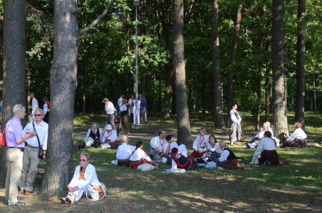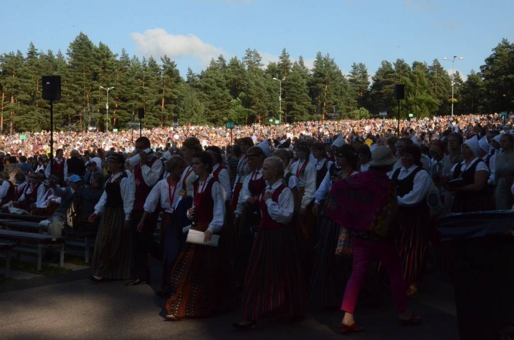 Spītējot saulei un karstumam, kas pavadīja koristus mēģinājumu laikos, koncertā "Līgo" Mežparkā izskanēja varens kopkoris, kurā piedalījās 240 jauktie, 79 sieviešu, 28 vīru, 42 senioru un 26 diasporas kori, kuri kopā veidoja vairāk nekā 15 400 cilvēku lielu dziedātāju sastāvu. Noslēguma koncertā piedalījās arī apmēram 700 dejotāju un 1200 pūtēju orķestru mūziķu. Lai atgūtu nedēļas laikā zaudēto miegu un uzkrātu spēkus pirms koncerta, dalībnieki snauda Mežaparka priežu ēnā.