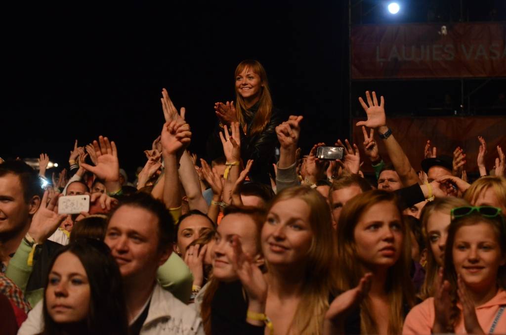 Liepājas pludmale festivālā "LMT Summer Sound Liepāja 2013" bija pārpildīta, kad piektdienas vakarā pirms pusnakts uz lielās skatuves kāpa festivāla galvenie viesi - Latvijas leģendārā grupa "Prāta Vētra". Sestdien festivāls turpinās.