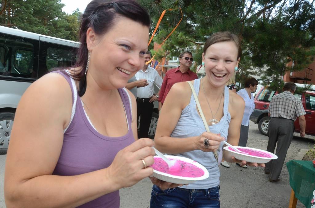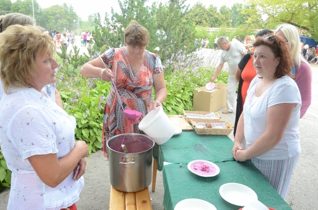 Sestdien pie pagasta pārvaldes neizpalika arī tradicionālā Medzes pagasta svētku vērtība - aukstā zupa. Ar gardo zupu cienāja Gunta un Rolands Dambji. Visiem svētku apmeklētājiem tā tika bez maksas.
