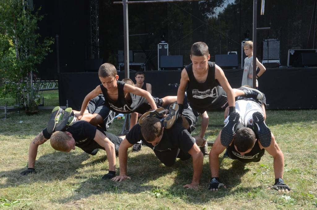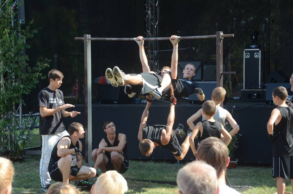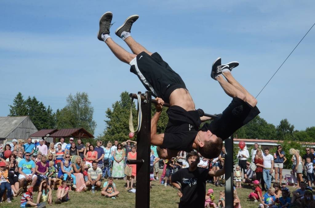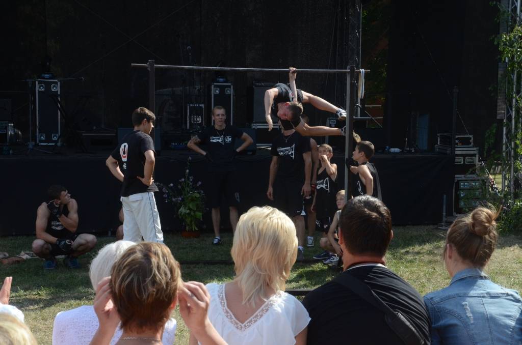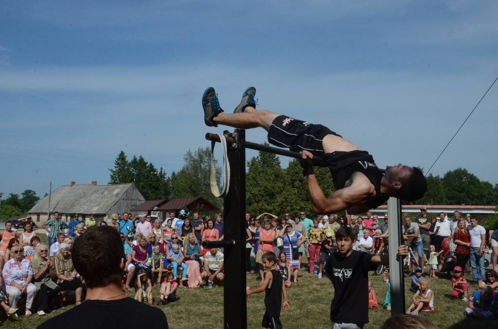Pēc braucamrīku parādes savu meistarību demonstrēja ielu vingrotāji no Liepājas un Saldus.