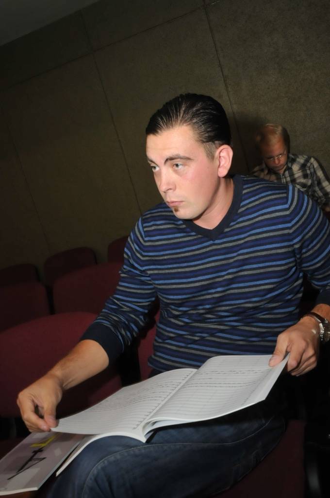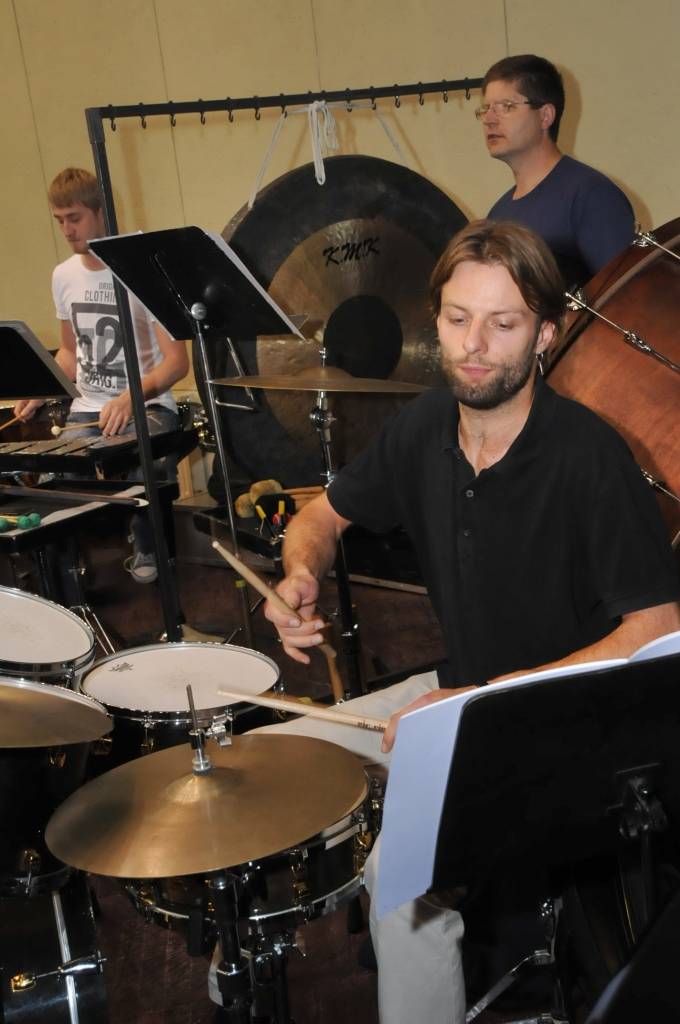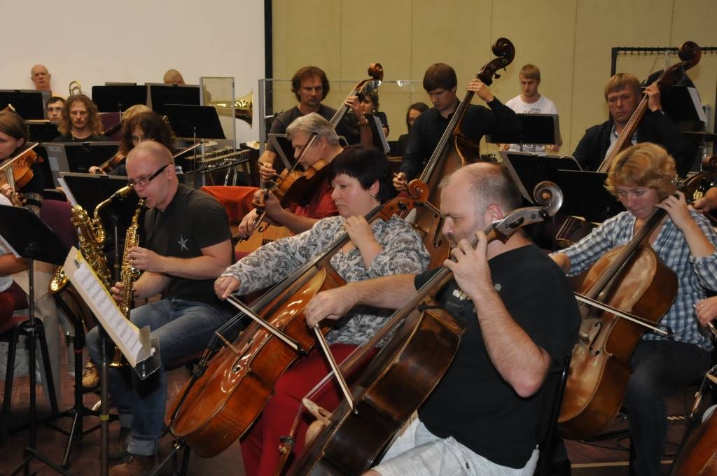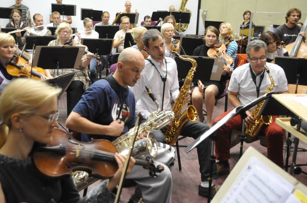 Portāls piedāvā ieskatu trešdienas, 18. septembra, mēģinājumā, kurā piedalījās arī Sestā Liepājas koncerta autors R. Zaļupe un sekoja līdzi mūziķu izpildījumam.