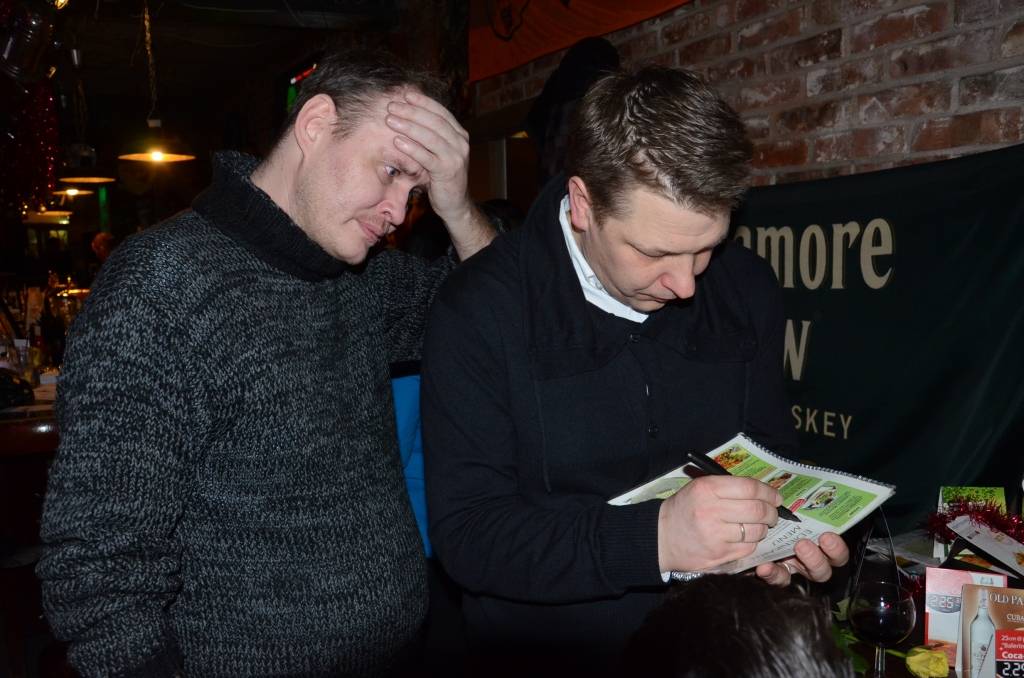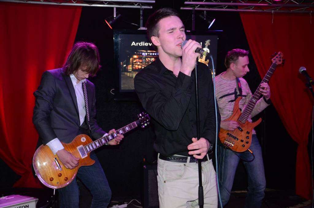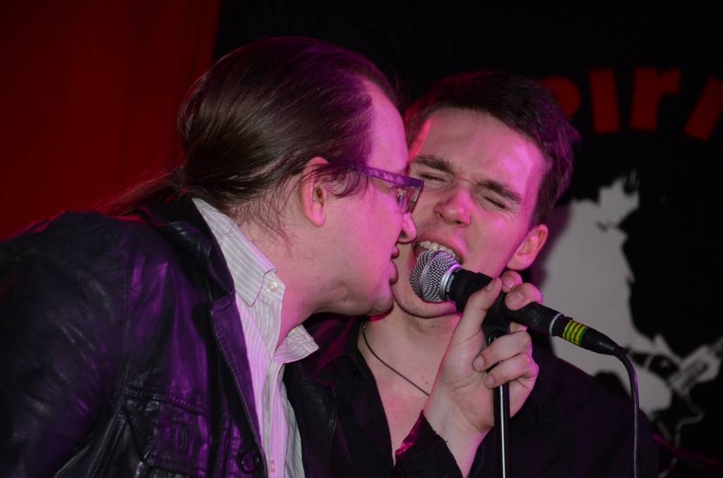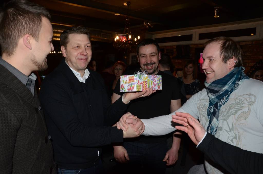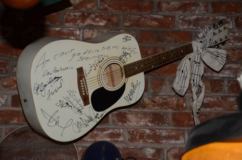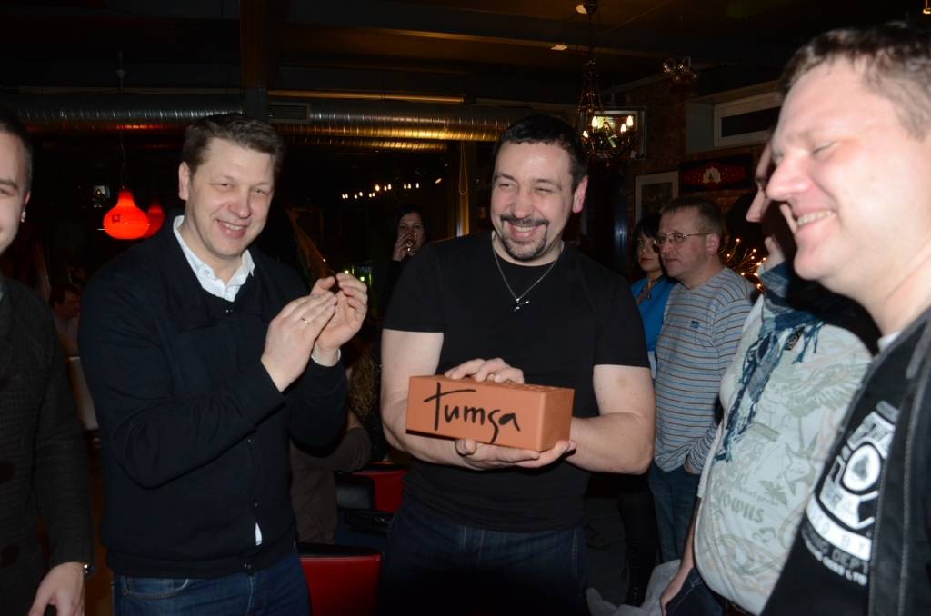 Grupas "Tumsa" mūziķi rokkafejnīcas īpašniekiem brāļiem Raivo un Marekam Mediņiem dāvāja ķieģeli - ar domu, lai būtu pamatakmens, kad brāļi Liepājā uzsāks nākamo biznesu.