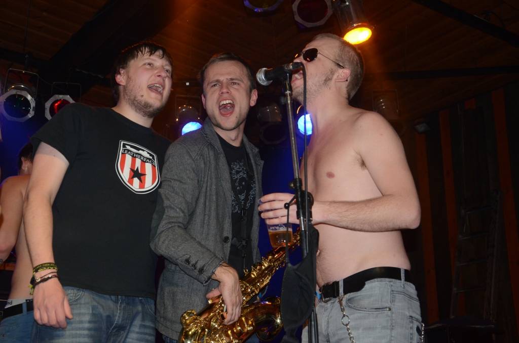 PAPILDINĀTS AR VIDEO. Pirms Ziemassvētkiem Liepājas klubā "Fontaine Palace" izskanēja tradicionālais Ziemassvētku jampadracis, kurā spēlēja pankroka grupas "PND" un "All Day Long".