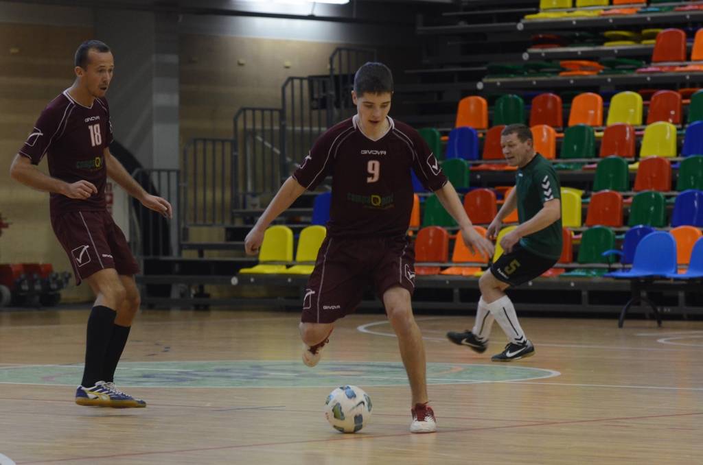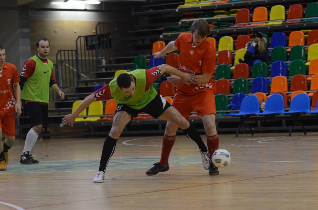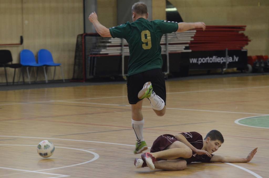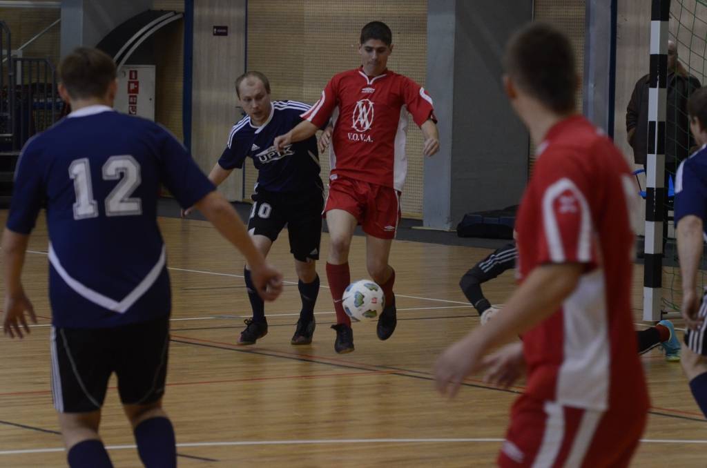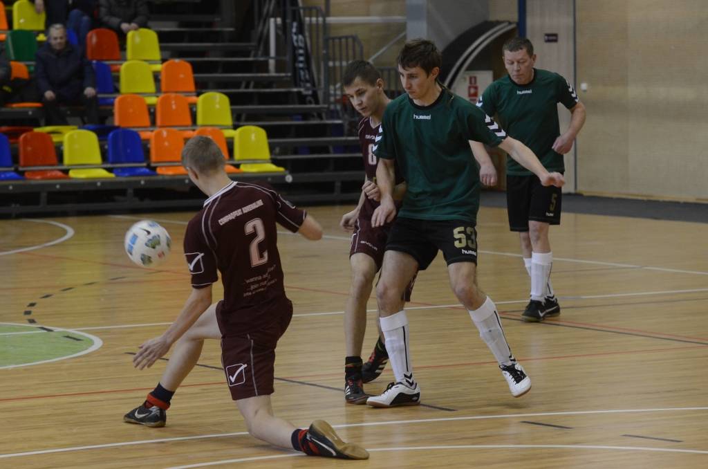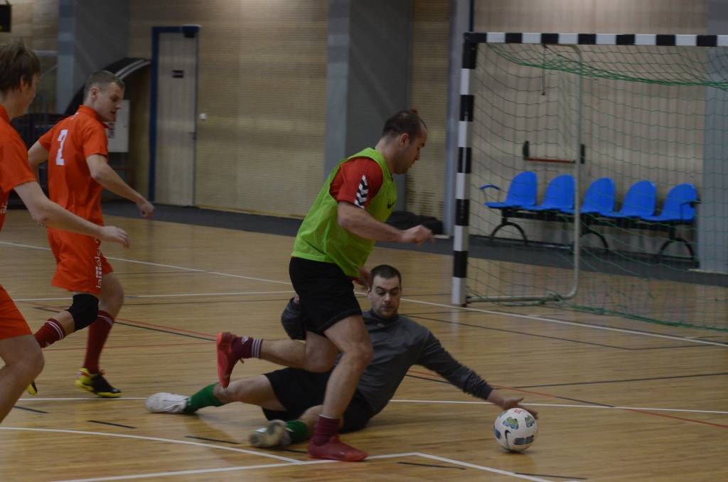 FOTO: "Varavīksne", "Classic", "Compaq peat Adrenaline" un "Galaksis N" uzvar Liepājas telpu futbola čempionāta spēlē