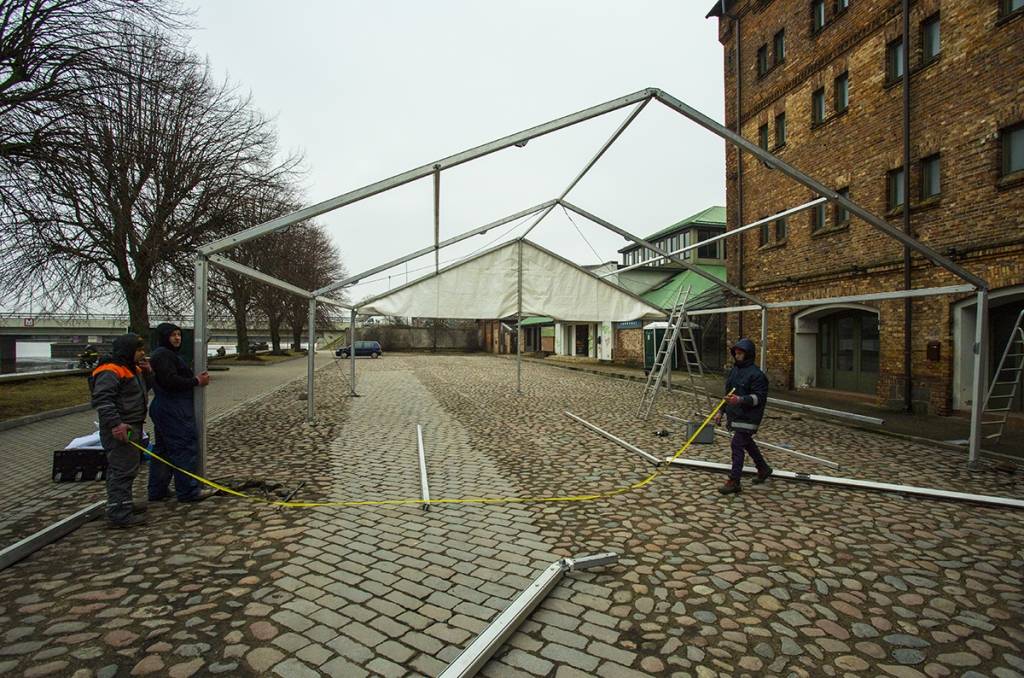 Vecā ostmalā sāk montēt slidotavu un lielo telti Stinšu svētku svinēšanai 14. februārī, informē Liepājas pašvaldībā.
