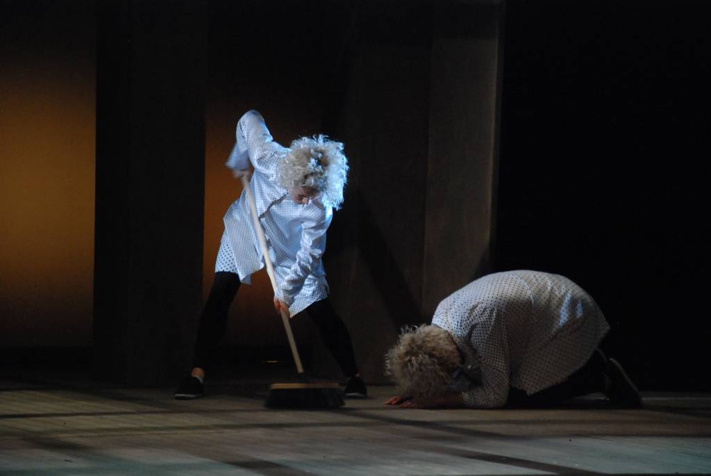 Piedāvājam foto no Liepājas teātra, kur trešdien notika ģenerālmēģinājums izrādei, traģikomēdijai "Paradīze", kas pirmizrādi piedzīvos 13. martā plkst.19.